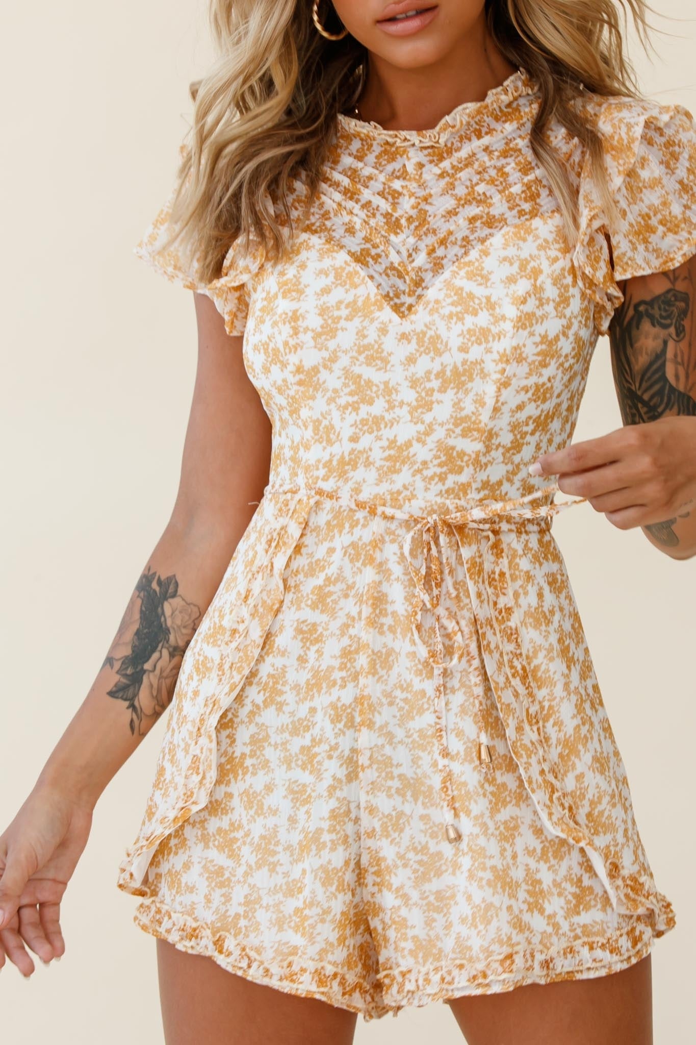 You're a real cutie in our Pomelo romper. Fully lined, it features super cute frill trim details, ruffle sleeves, string-tie around the waist and cut-out back. Perfect for brunch with your bffs teamed with strappy nude heels and a basket bag.