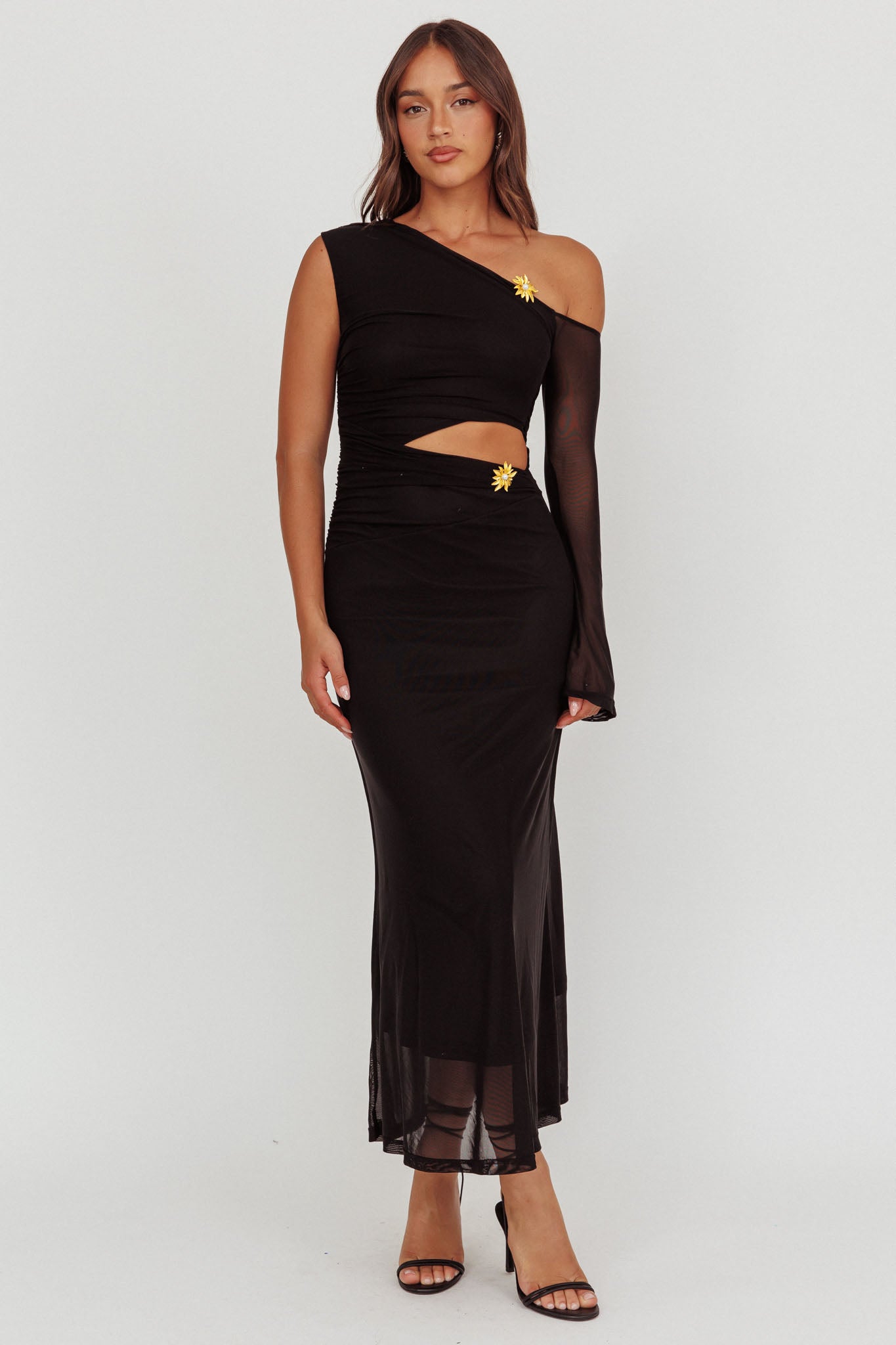 Prima One Shoulder Cut-Out Maxi Dress Black
