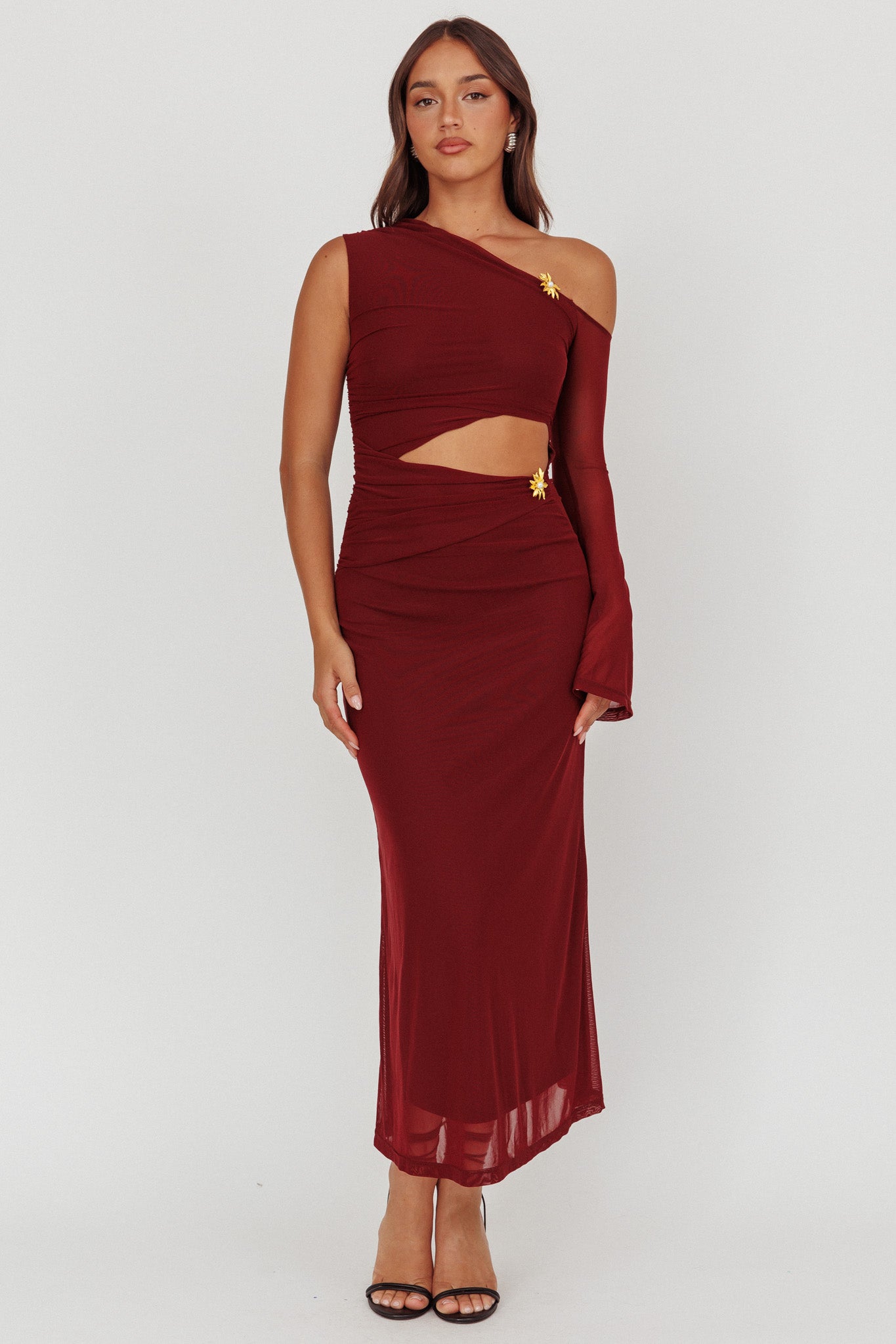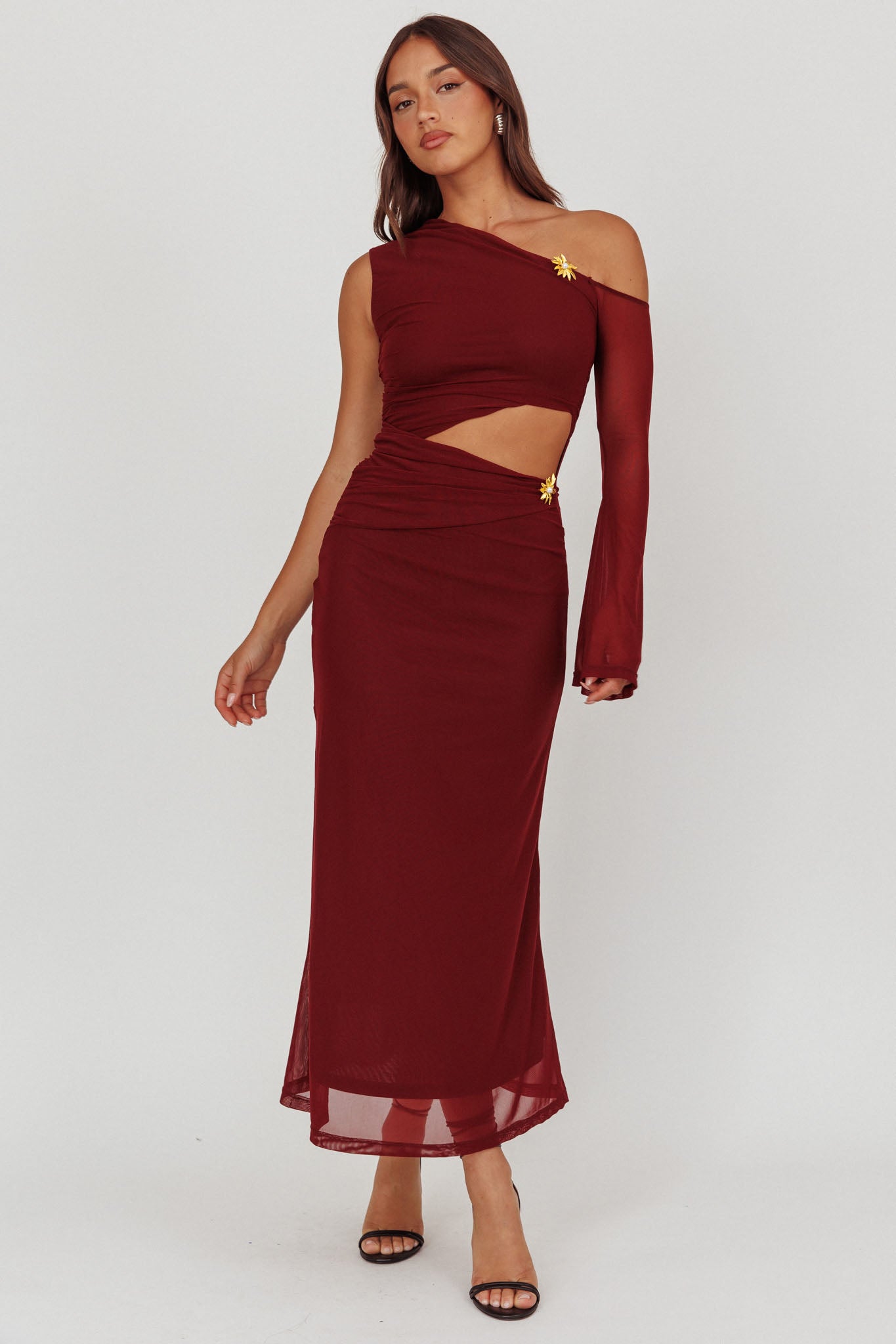 Prima One Shoulder Cut-Out Maxi Dress Wine