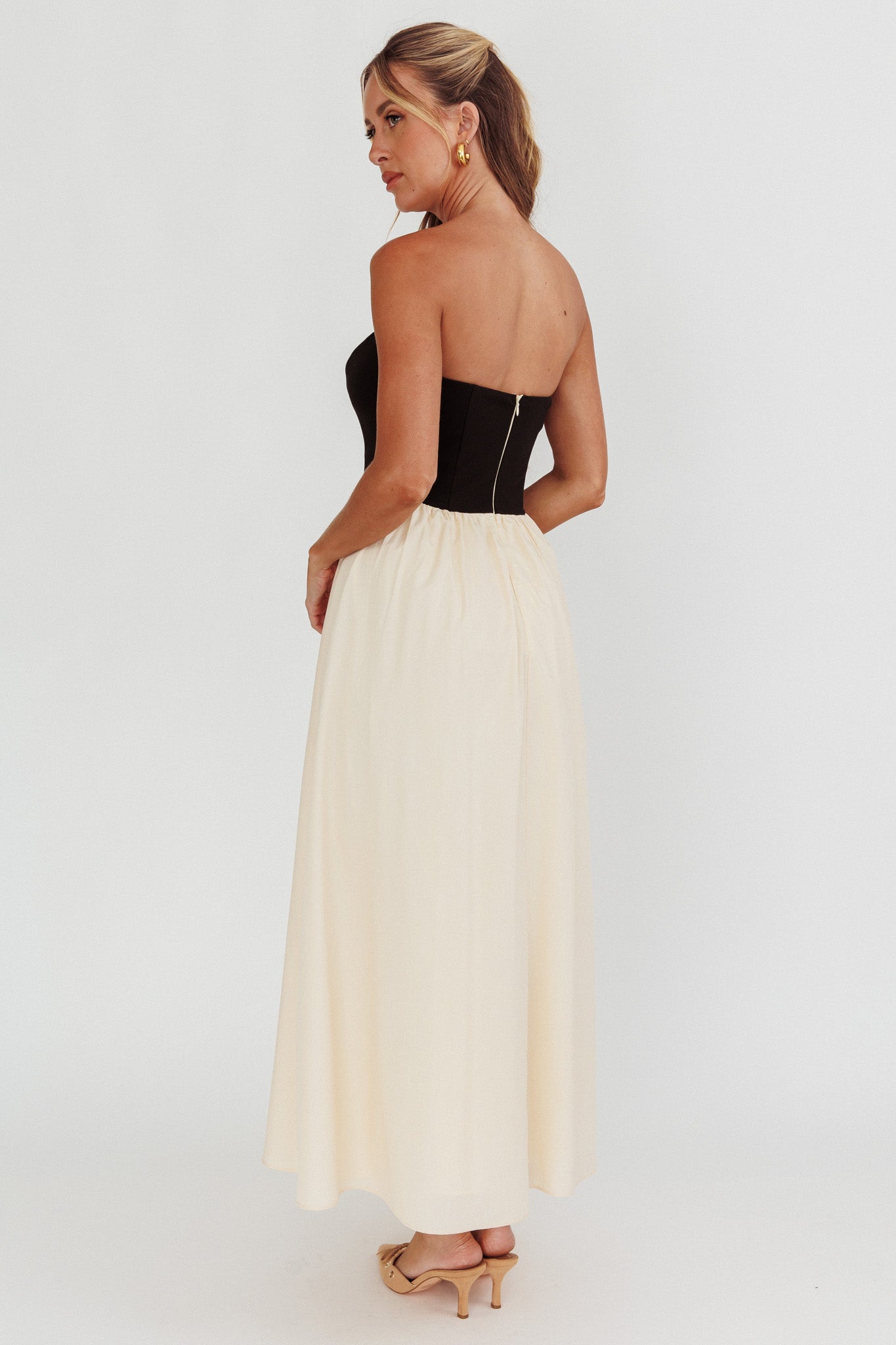 Princess Strapless Contrast Maxi Dress Black/Beige