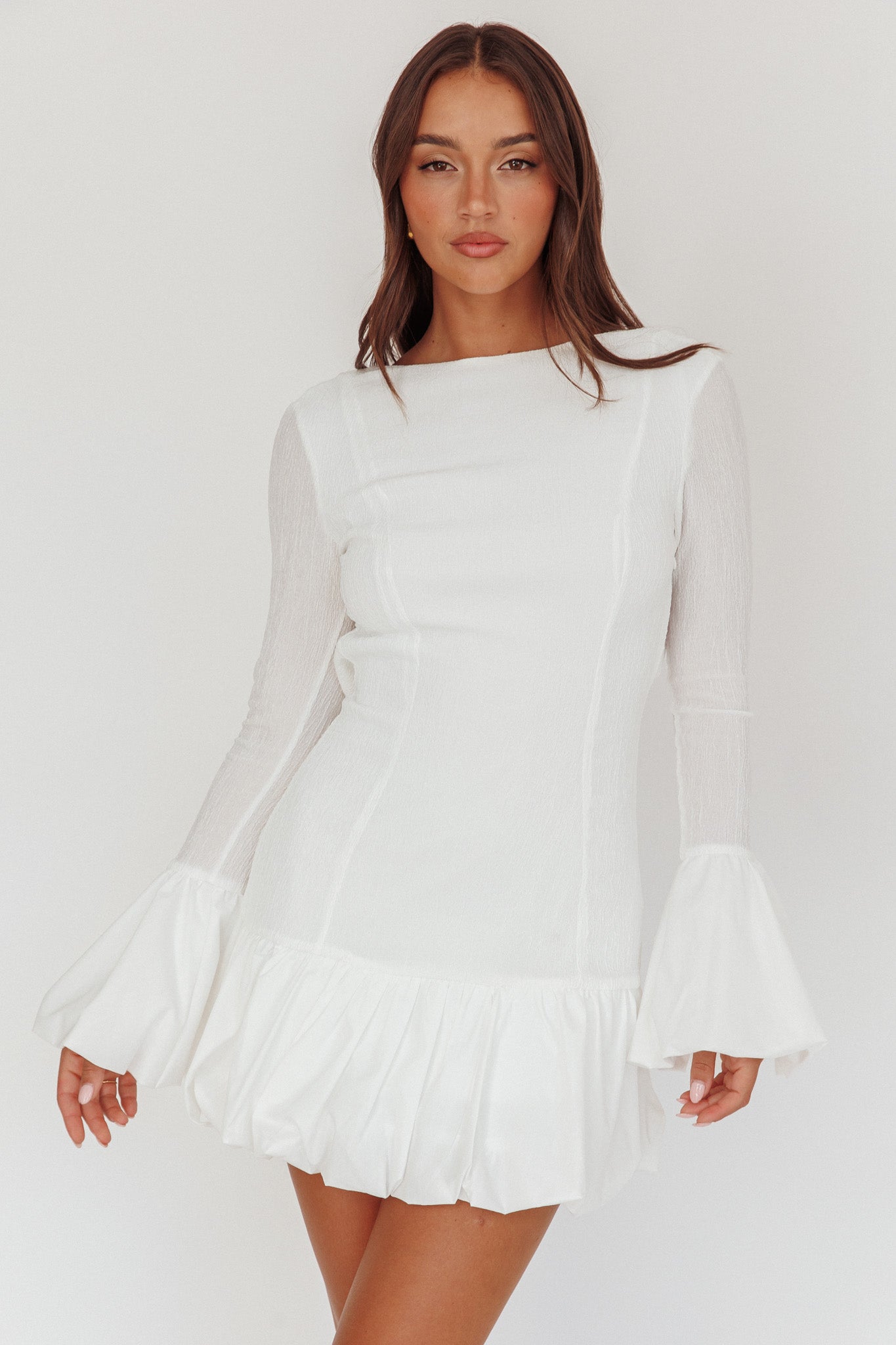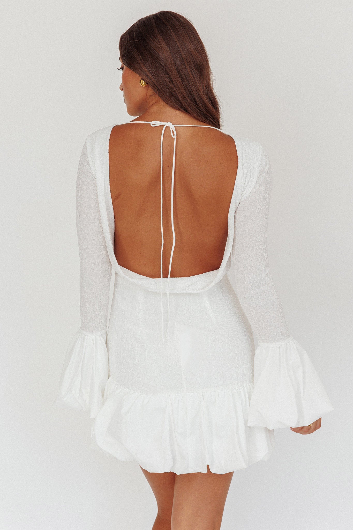Jaws will drop when you walk in wearing our Promise mini dress. It features a bubble hem and cuffs, not to mention that sexy, open back! It's perfect for a bachelorette or special event. Team it with strappy, white heels and a clutch for an unforgettable look.