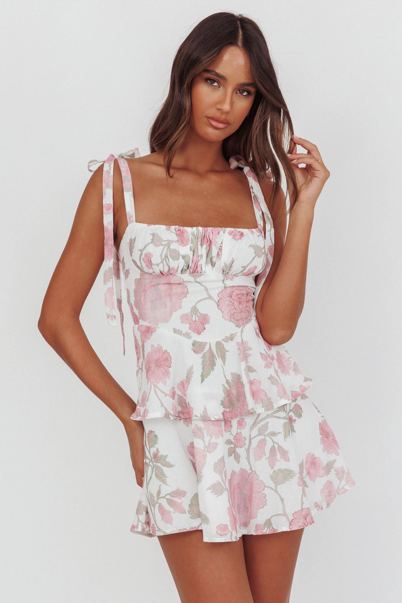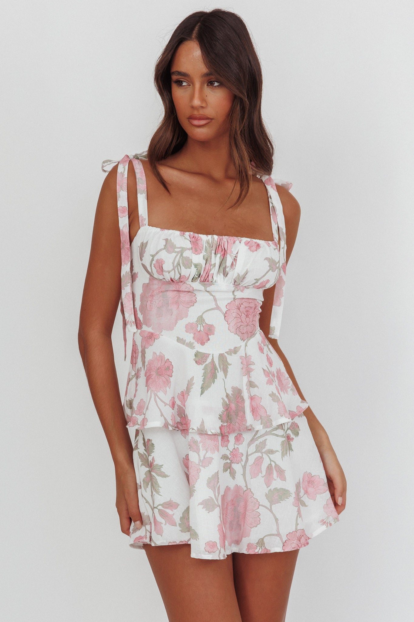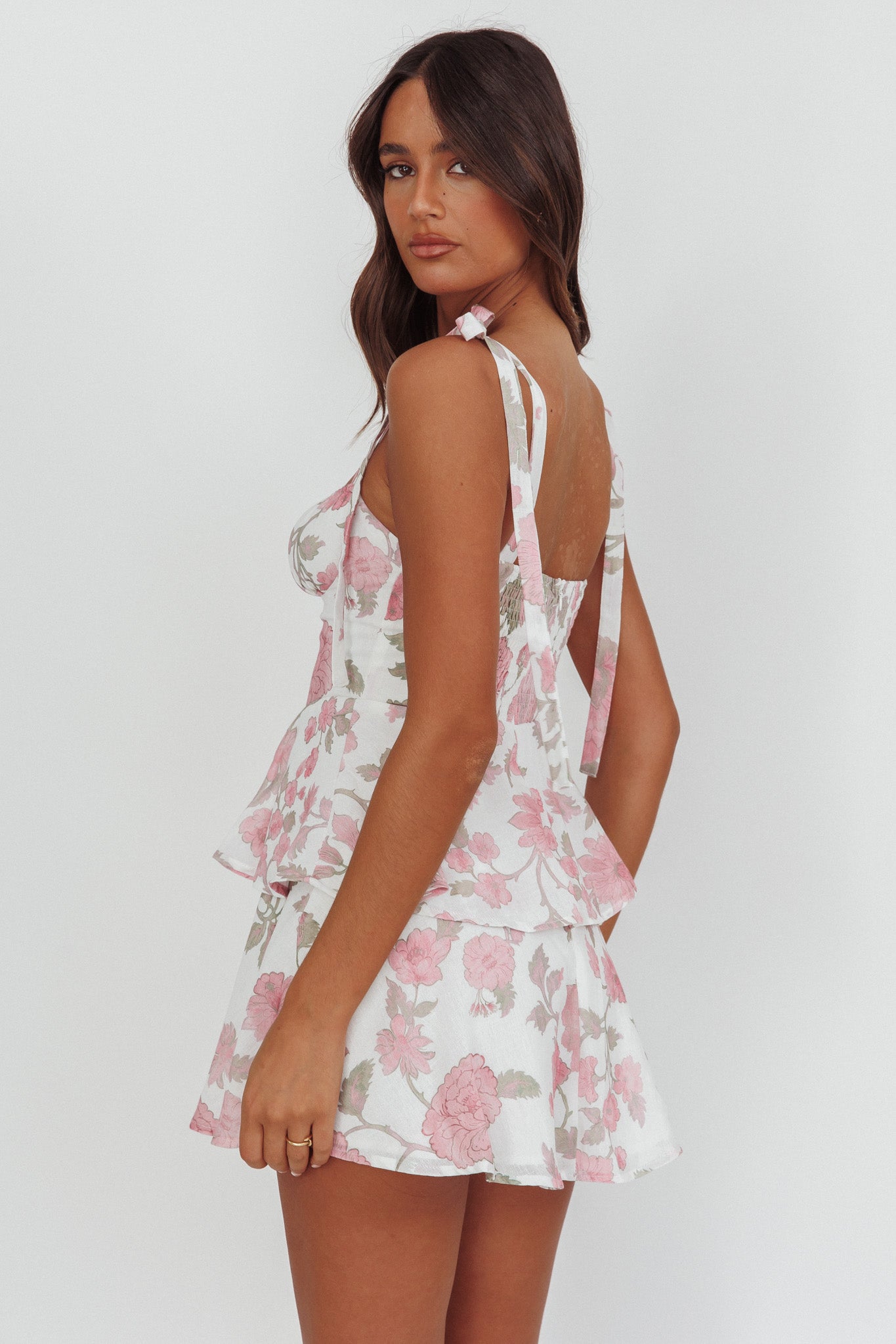 Provence Bloom Peplum Mini Dress Floral Pink