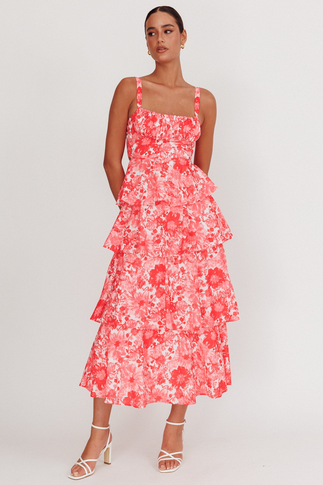 Provence Bloom Tiered Floral Maxi Dress Pink