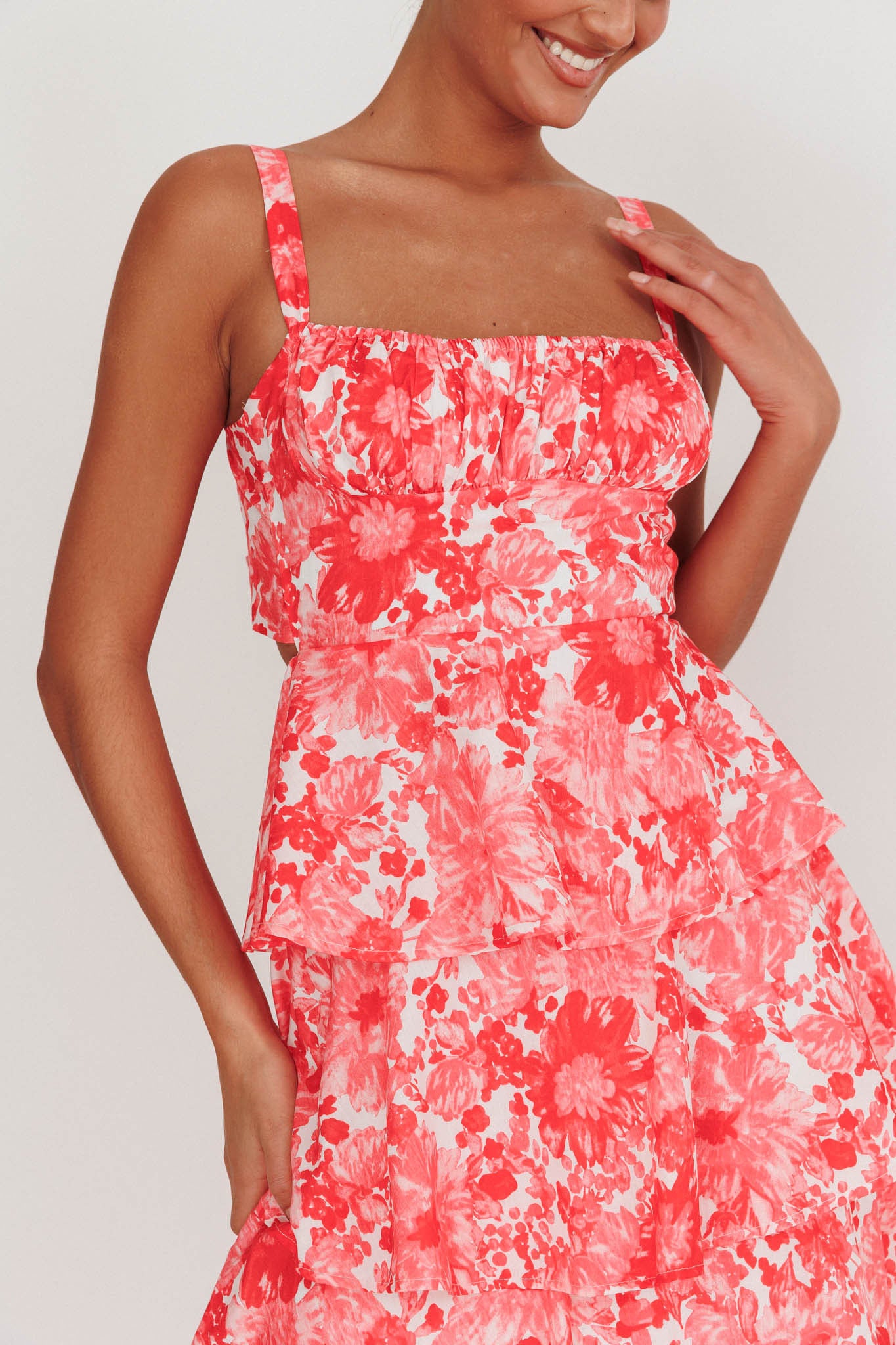 Designed for the stylish and feminine, our Provence Bloom tiered maxi dress is bound to leave an unforgettable impression. It features a tiered ruffle design and bold floral print. Wear it to casual or formal functions to exude a bold confidence. Highlight your personal style by pairing this dress with your signature jewelry pieces.