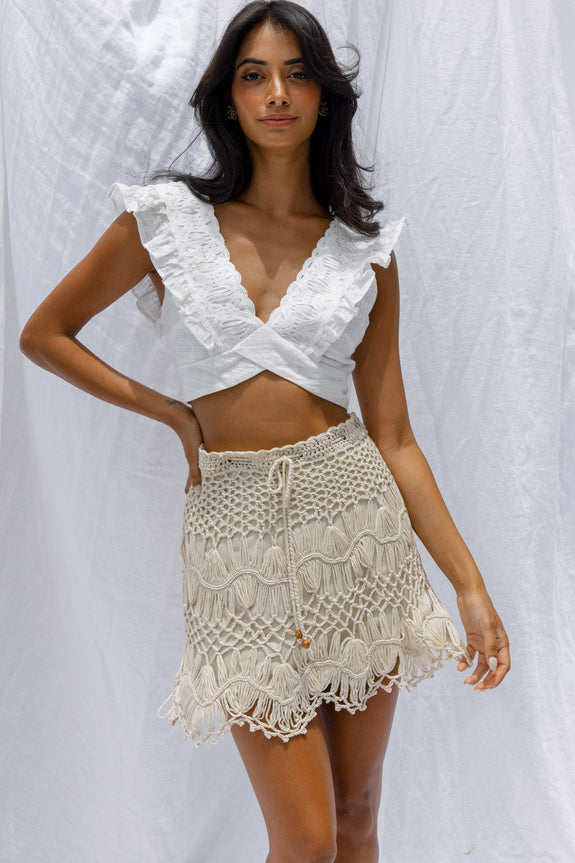 The island life is calling us and we need this skirt, stat. We are loving its beachy crochet knit throughout and wooden toggles. Perfect for your next beach vacay teamed with a crop top or a bikini. Pura vida!