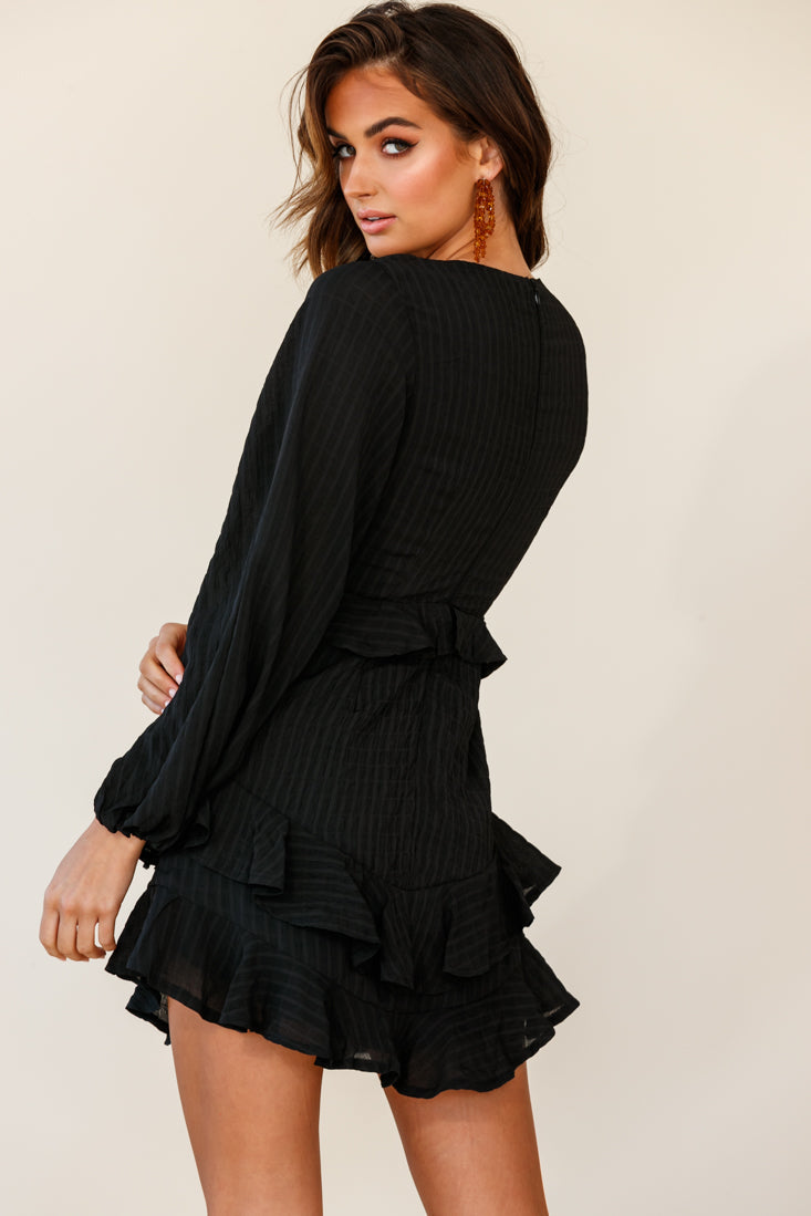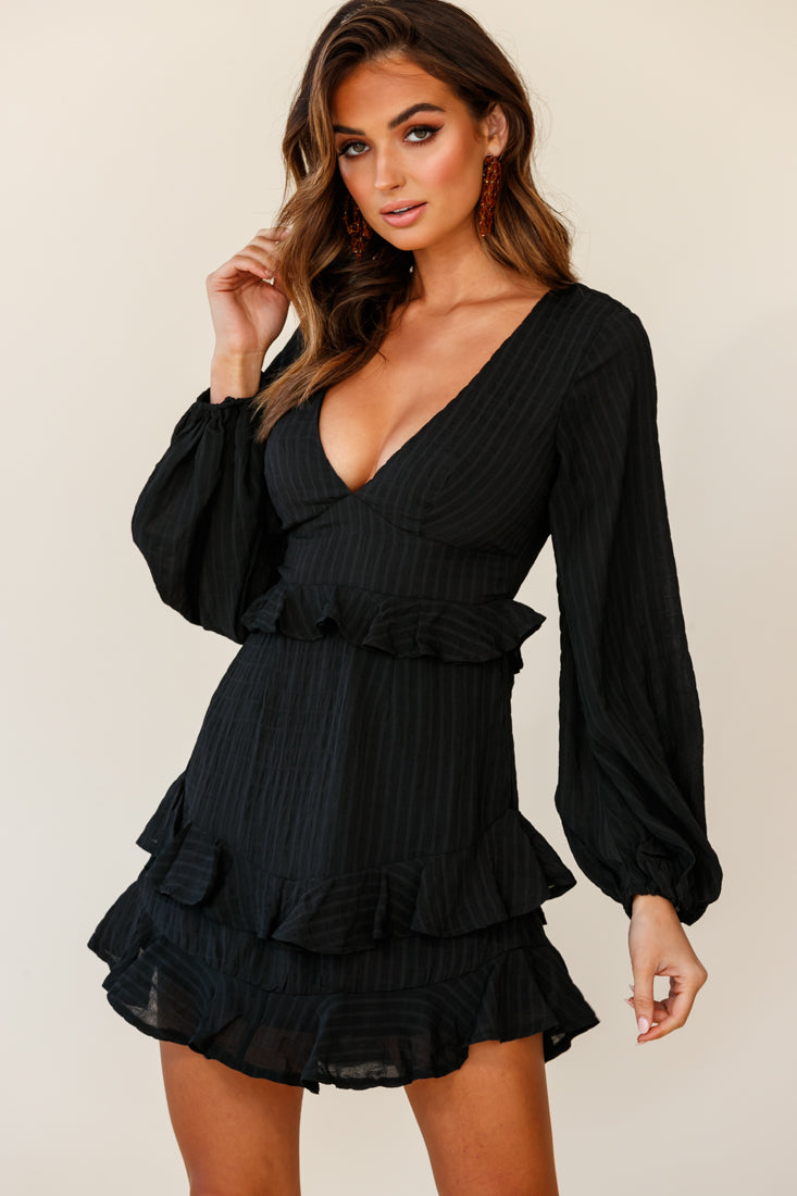 Make an entrance in our beautiful Queenie dress. Partially lined, it features a V-neckline, long balloon sleeves with elasticated cuffs and ruffle trim detailing. Perfect for a romantic date night with bae teamed with strappy heels and gold hoops.
