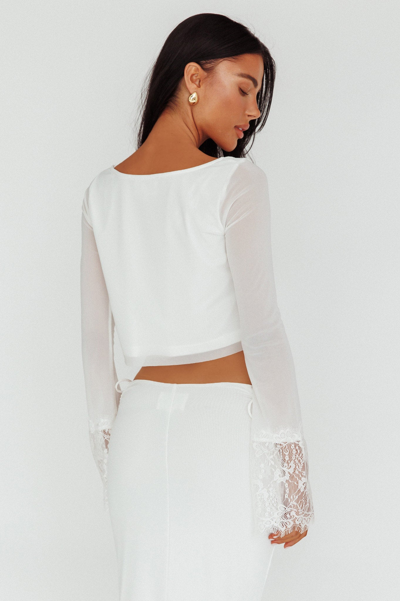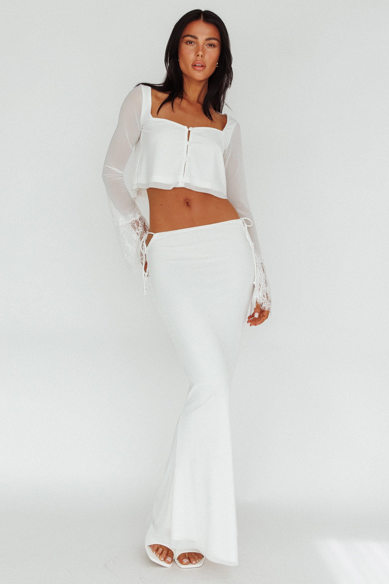 Turn heads in our gorgeous Rana crop top. Featuring long sleeves with lace cuffs, it's perfect for sunset happy hour with your besties. Team it with its matching skirt and mules for a look we are loving.