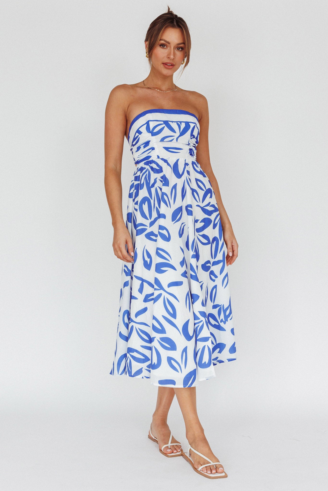 Randi Tie-Back Maxi Dress Leaf Print Blue