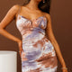 Make them stop and stare. You're the real deal, baby! We are loving this hot little number. Featuring a cool, marbled tie-dye print, stretchy ribbed fabric and ruching up the sides, it'll hug every curve. Wear it on a night out, dancing till dawn, teamed with clear heels and a purse.