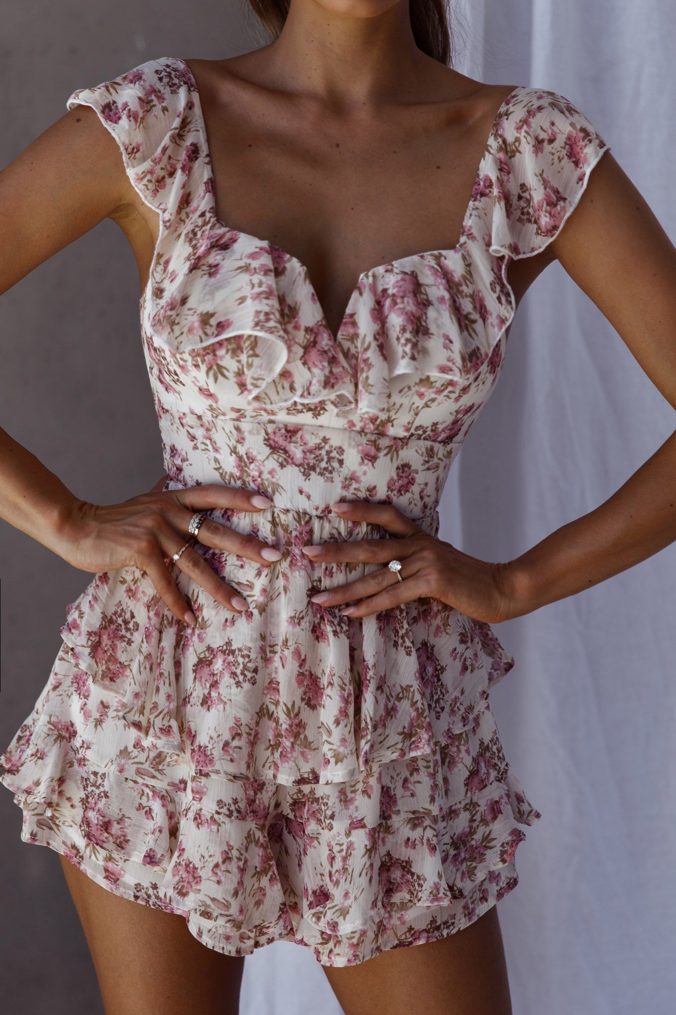 We're all caught up in our dreamy Revel romper. Featuring a floaty chiffon throughout, tied back and ruffle trim detail. Perfect for a flirty lunch date teamed with a headscarf and a small purse for a super sweet look.
