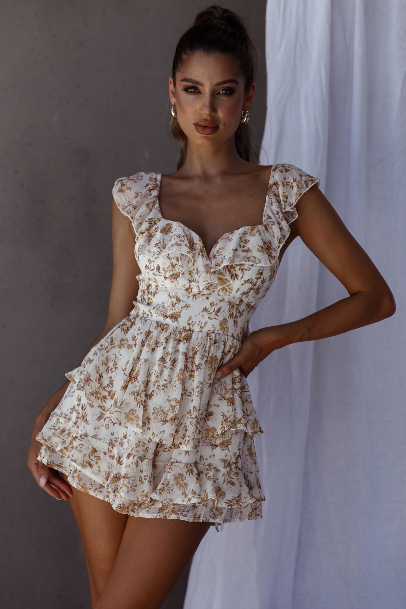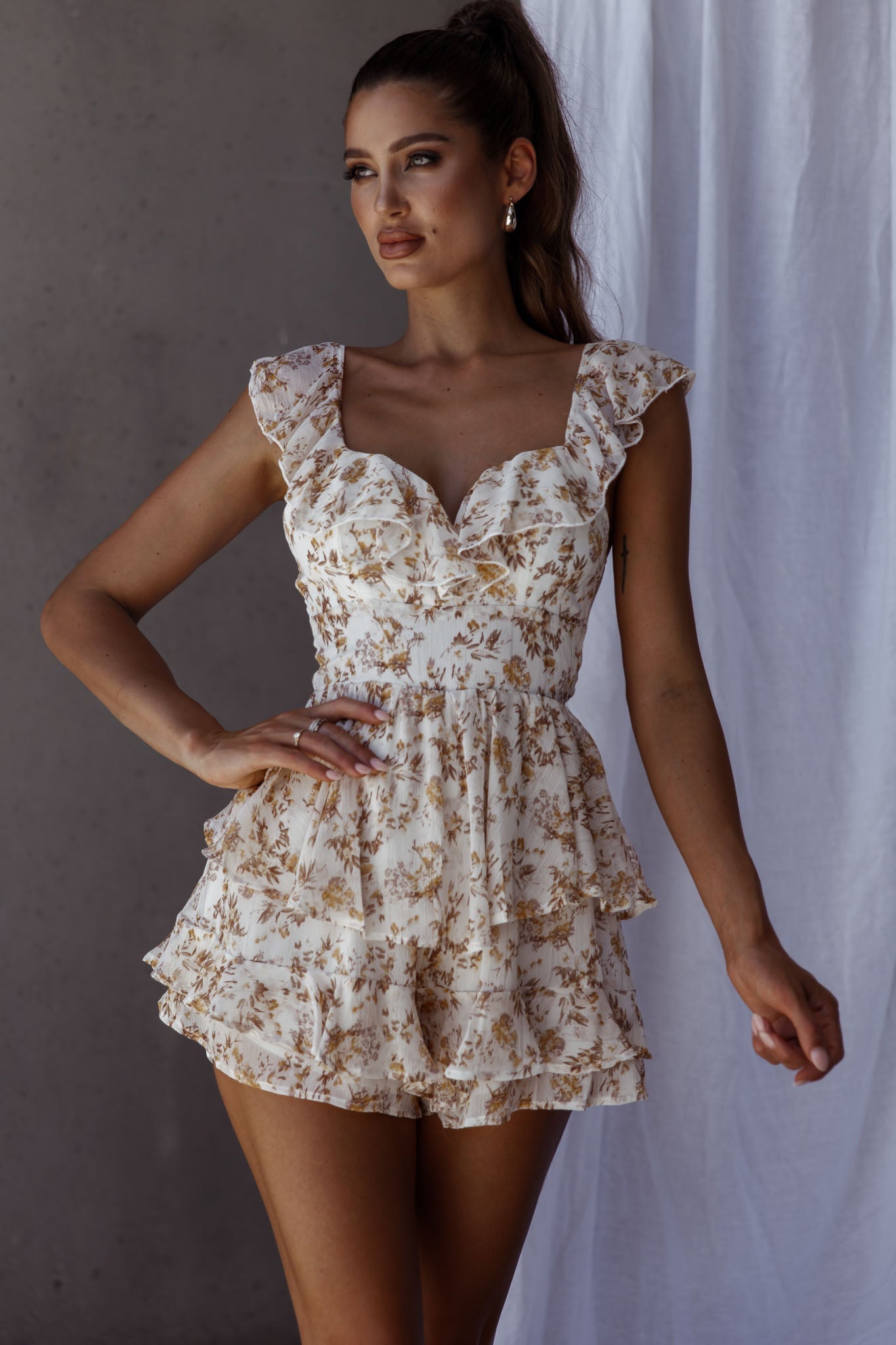 We're all caught up in our dreamy Revel romper. Featuring a floaty chiffon throughout, tied back and ruffle trim detail. Perfect for a flirty lunch date teamed with a headscarf and a small purse for a super sweet look.