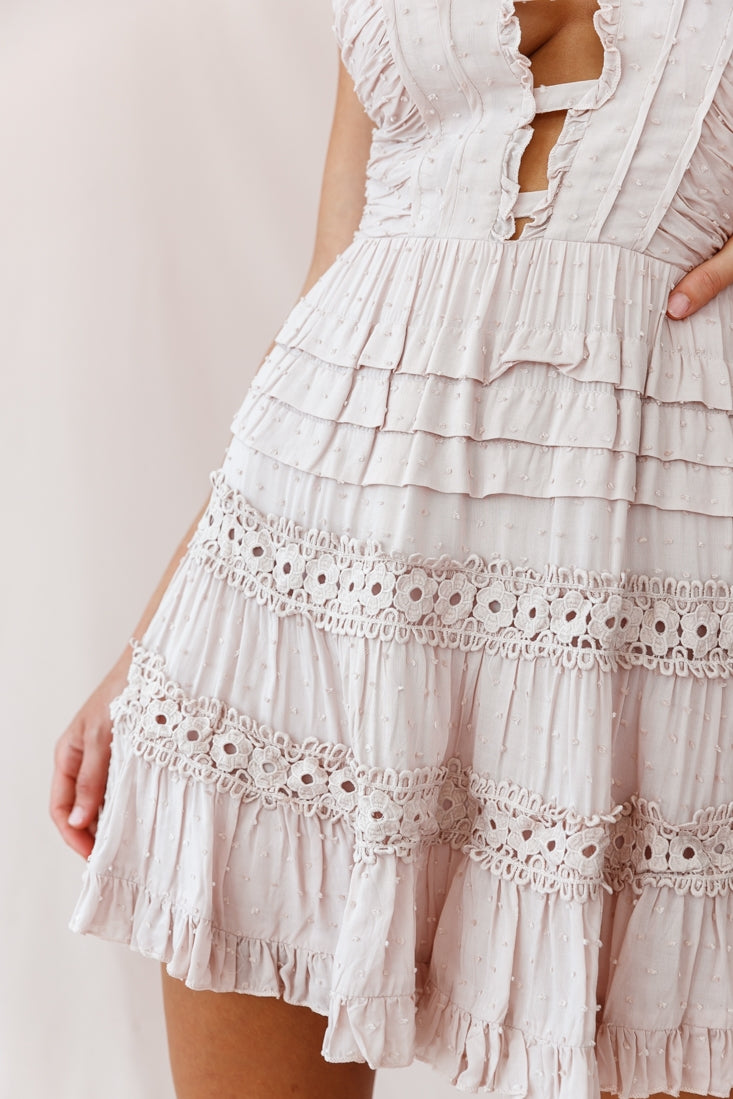 Turn heads in our super cute Riley dress. Fully lined, it features the most gorgeous appliqué inserts around the skirt, deep cut-out V-neckline, ruffle details and low back. Perfect for a stroll along the beach boardwalk or a BBQ pool party, teamed with canvas wedges and a straw tote. Obsessed!