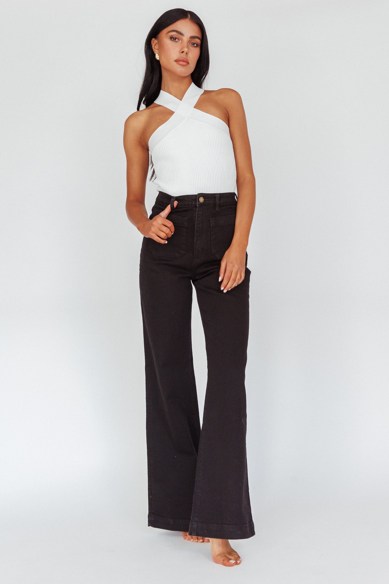 - Specially angled and shaped in the back for flattering fit