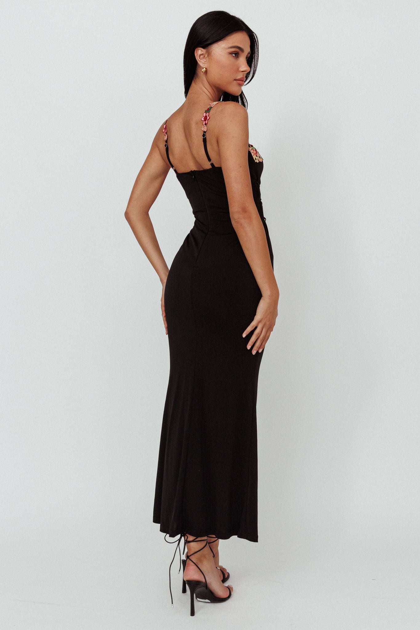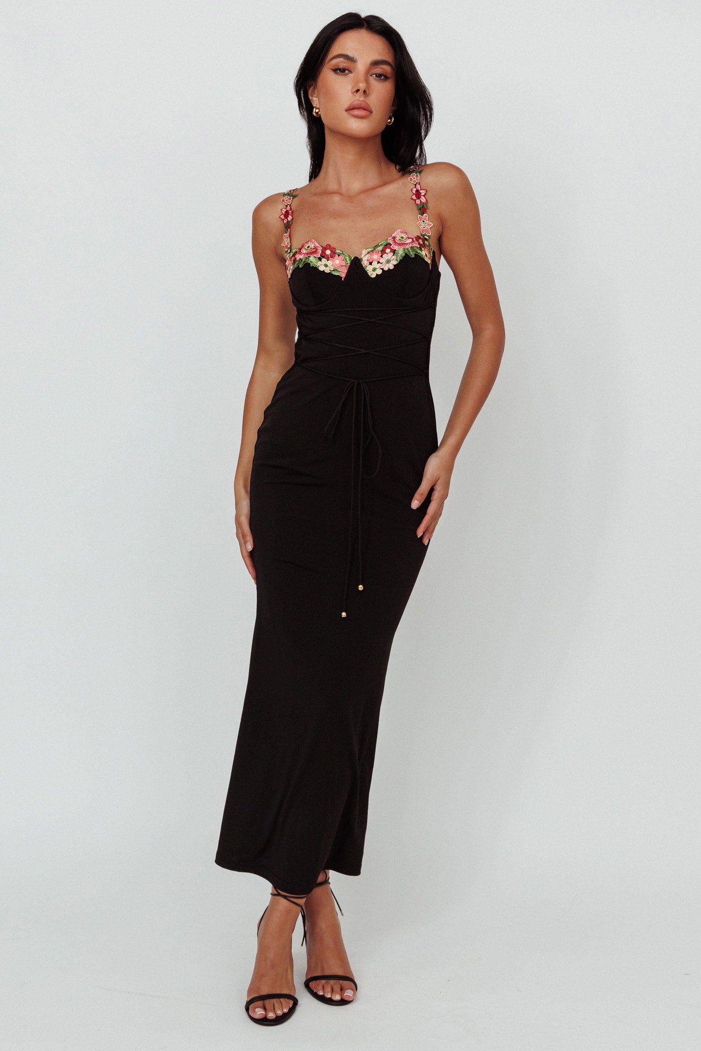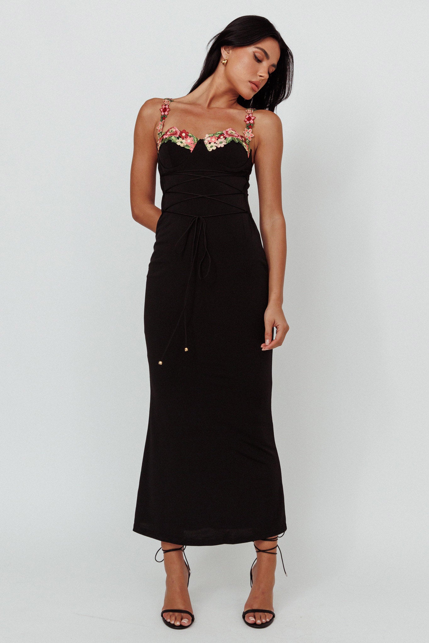 Heads will turn when you walk by in our gorgeous Rose Garden midi dress. We are in love with its pretty floral applique trim! Perfect for a wedding or birthday celebration. Team it with mules and a clutch for a romantic look we are loving.
