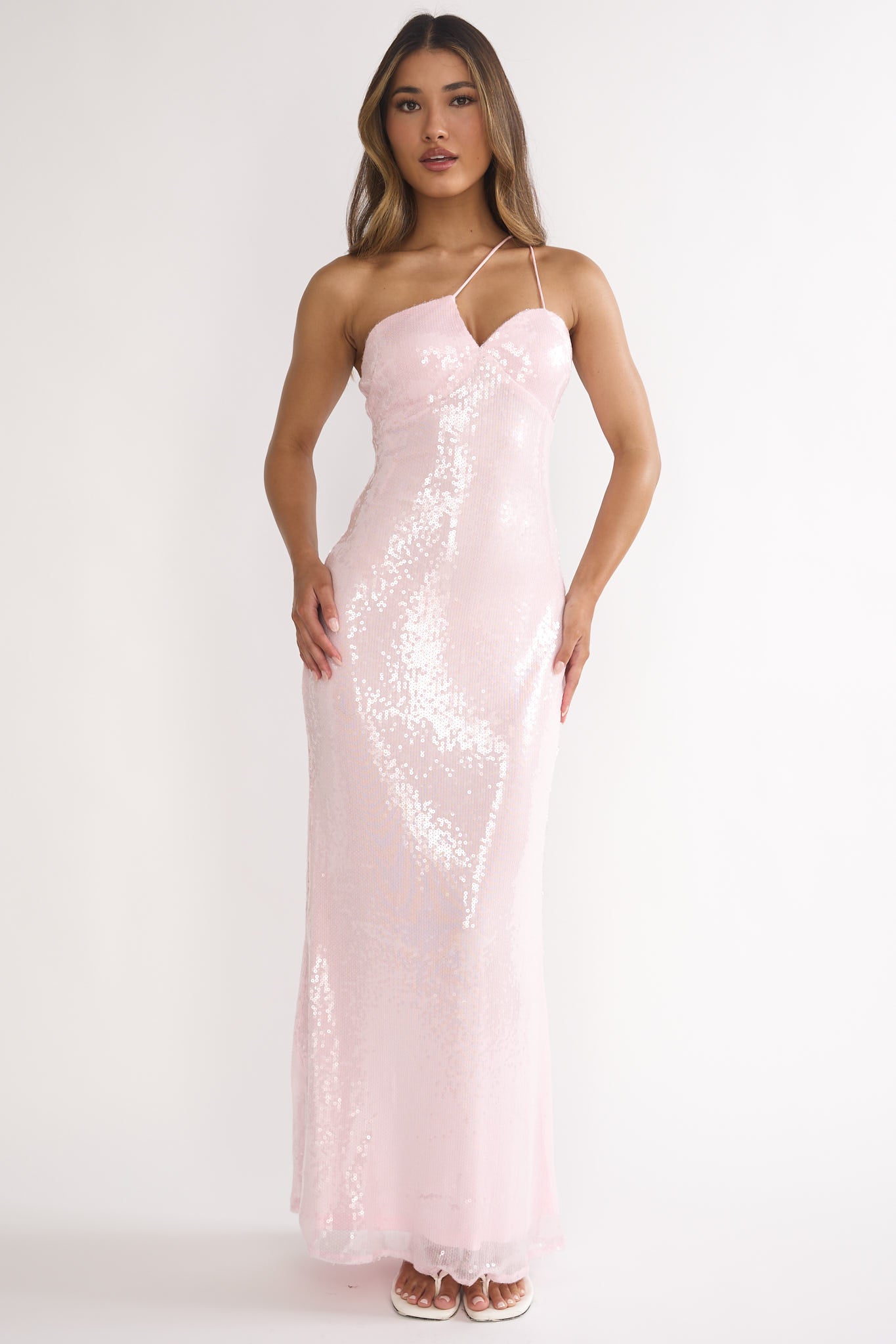 Roselyn One-Shoulder Sequin Maxi Dress Pink