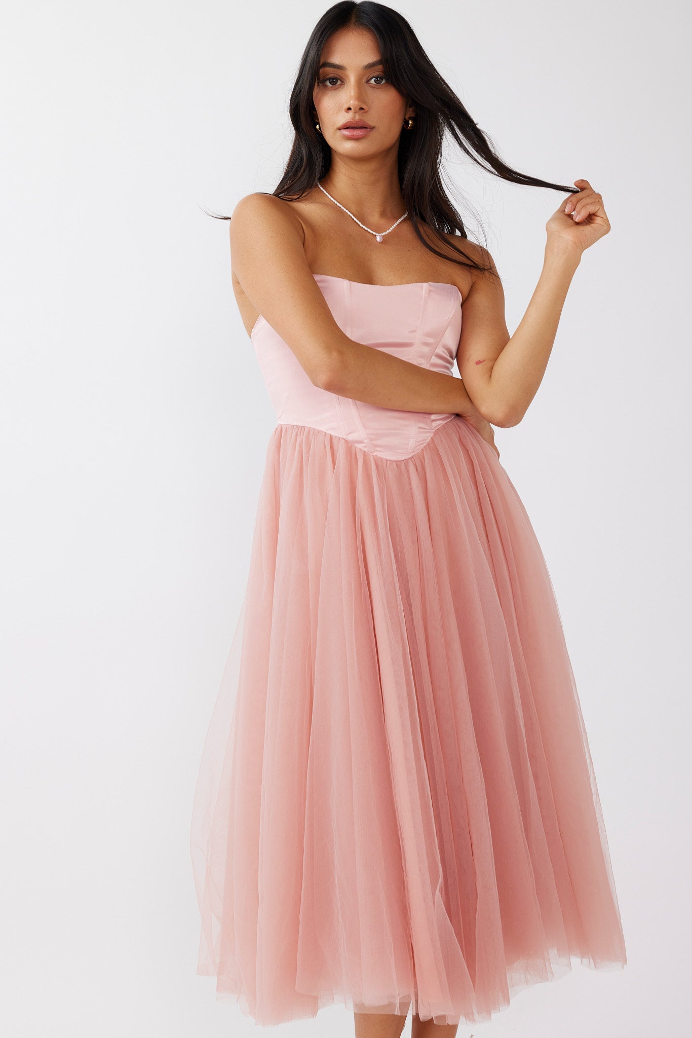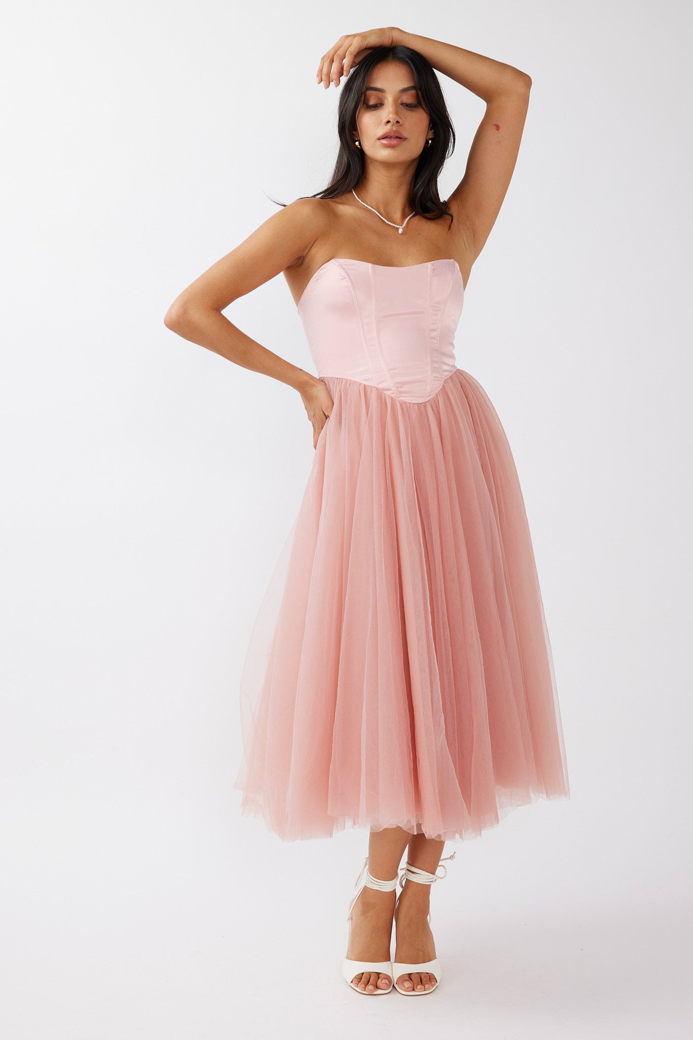 Rosemary Tulle Bustier Midi Dress Pink