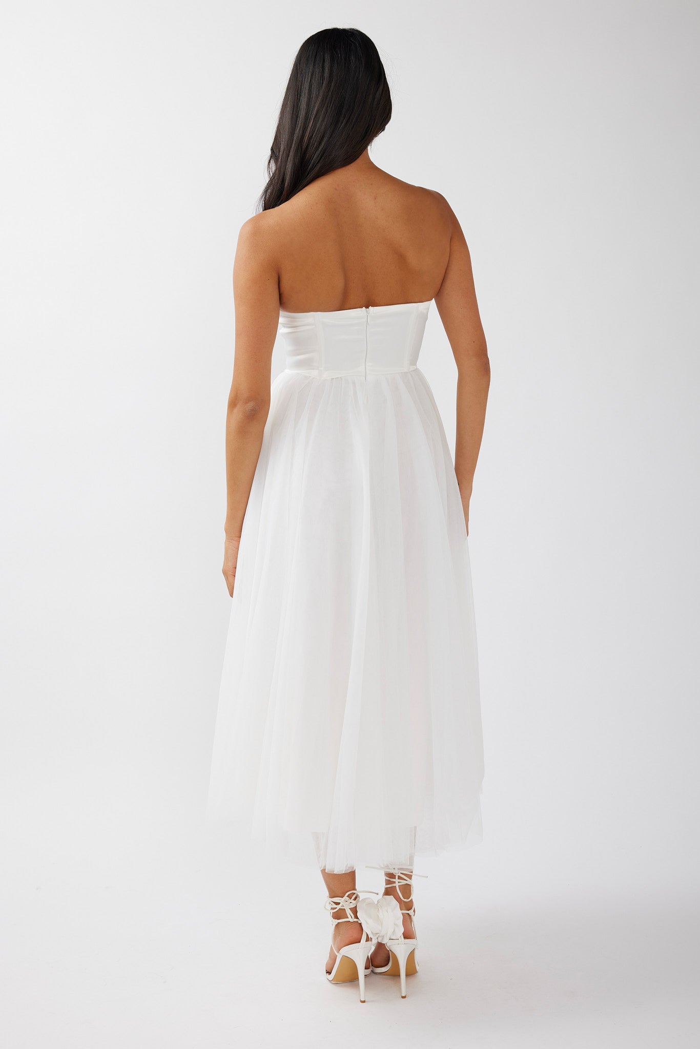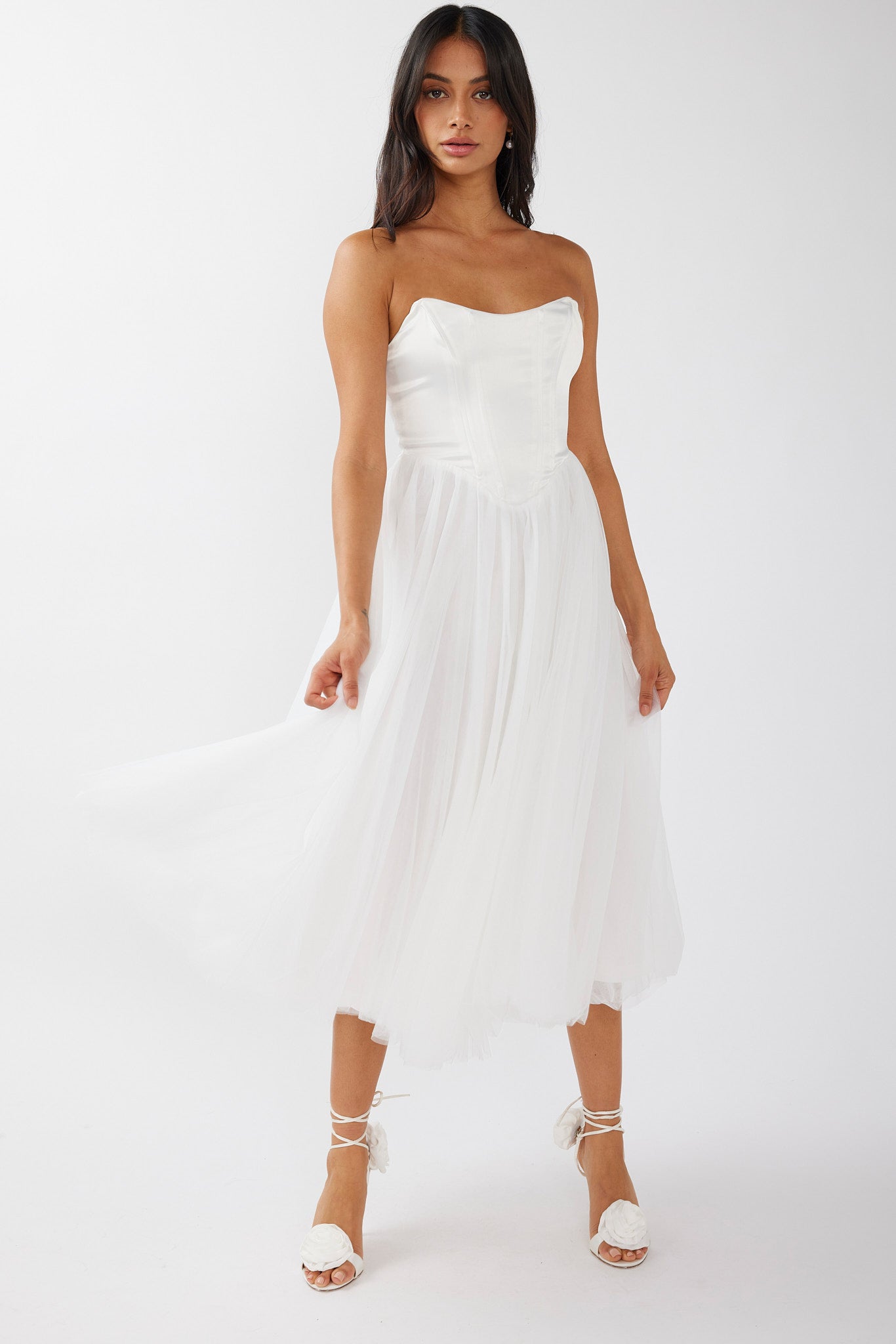 We are totally crushing on our gorgeous Rosemary dress. It's giving ballet-core with its pretty tulle and bustier-style bodice. With its lace-up bodice and thigh-high split, it's sure to turn heads. Perfect for a special birthday celebration! Team it with heels and a clutch for a look we are loving.