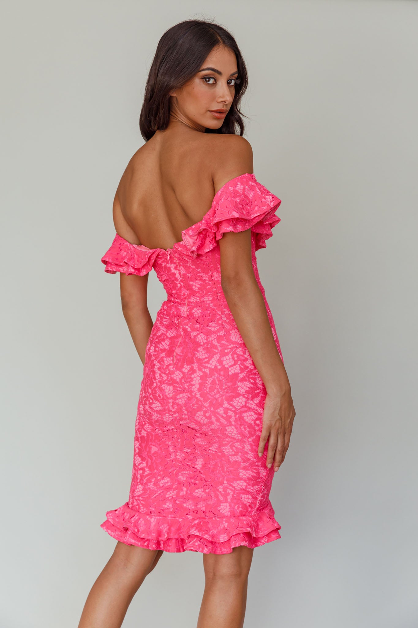 - Hot pink lace midi dress
