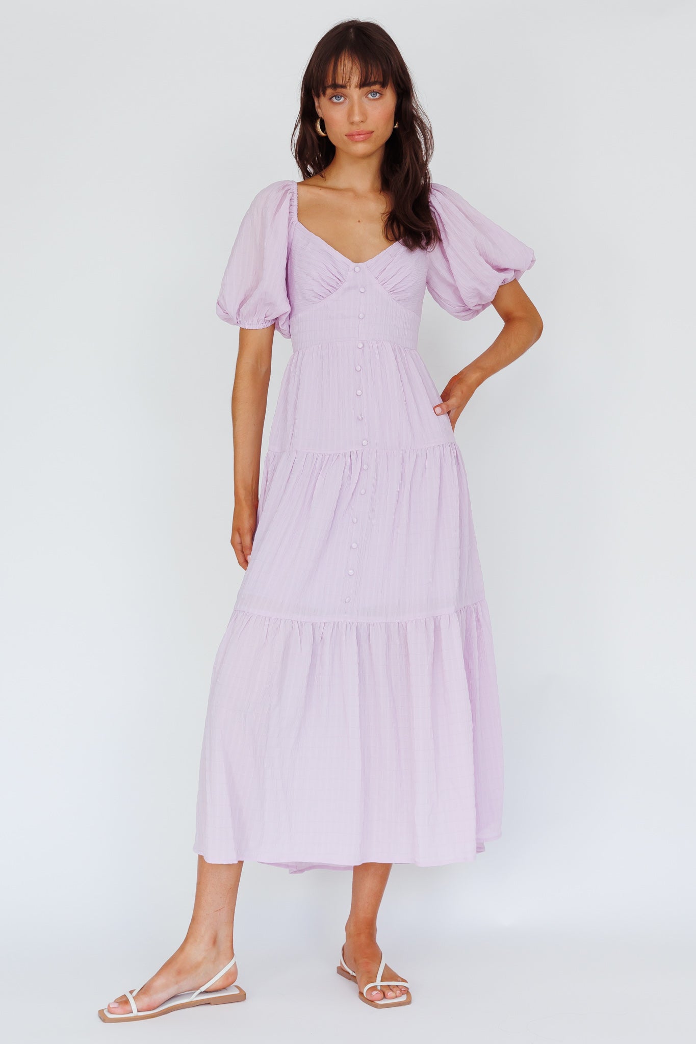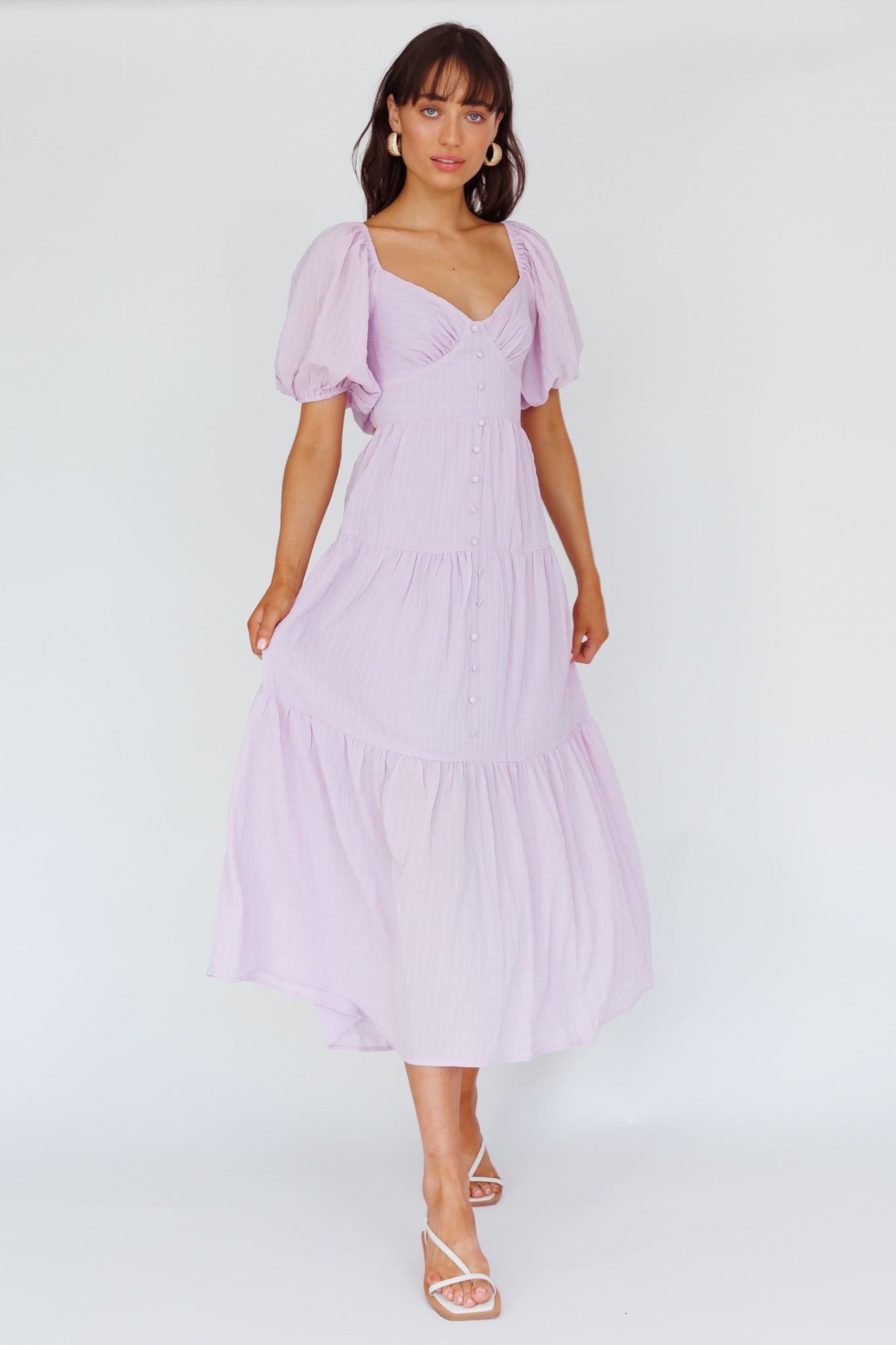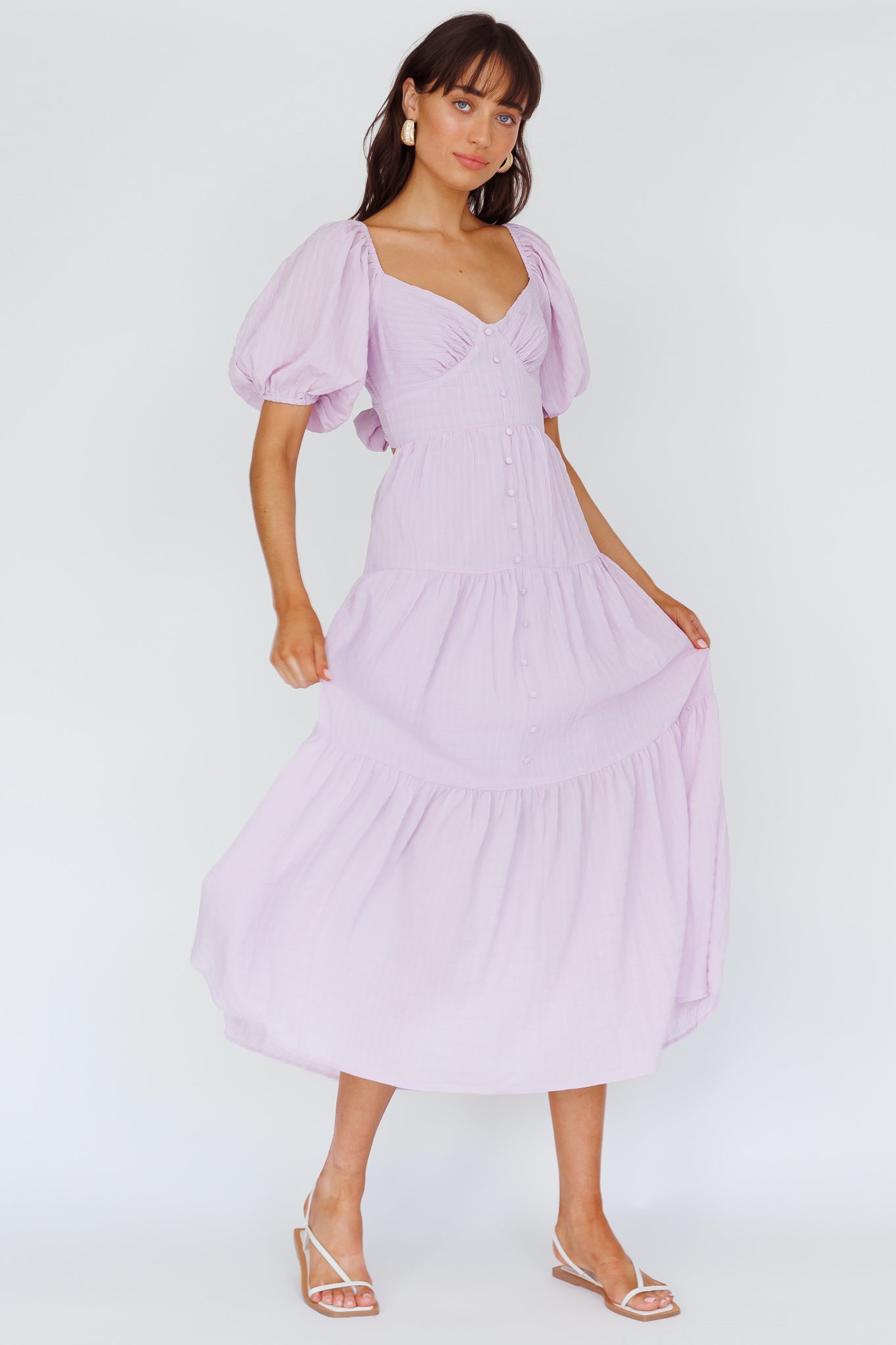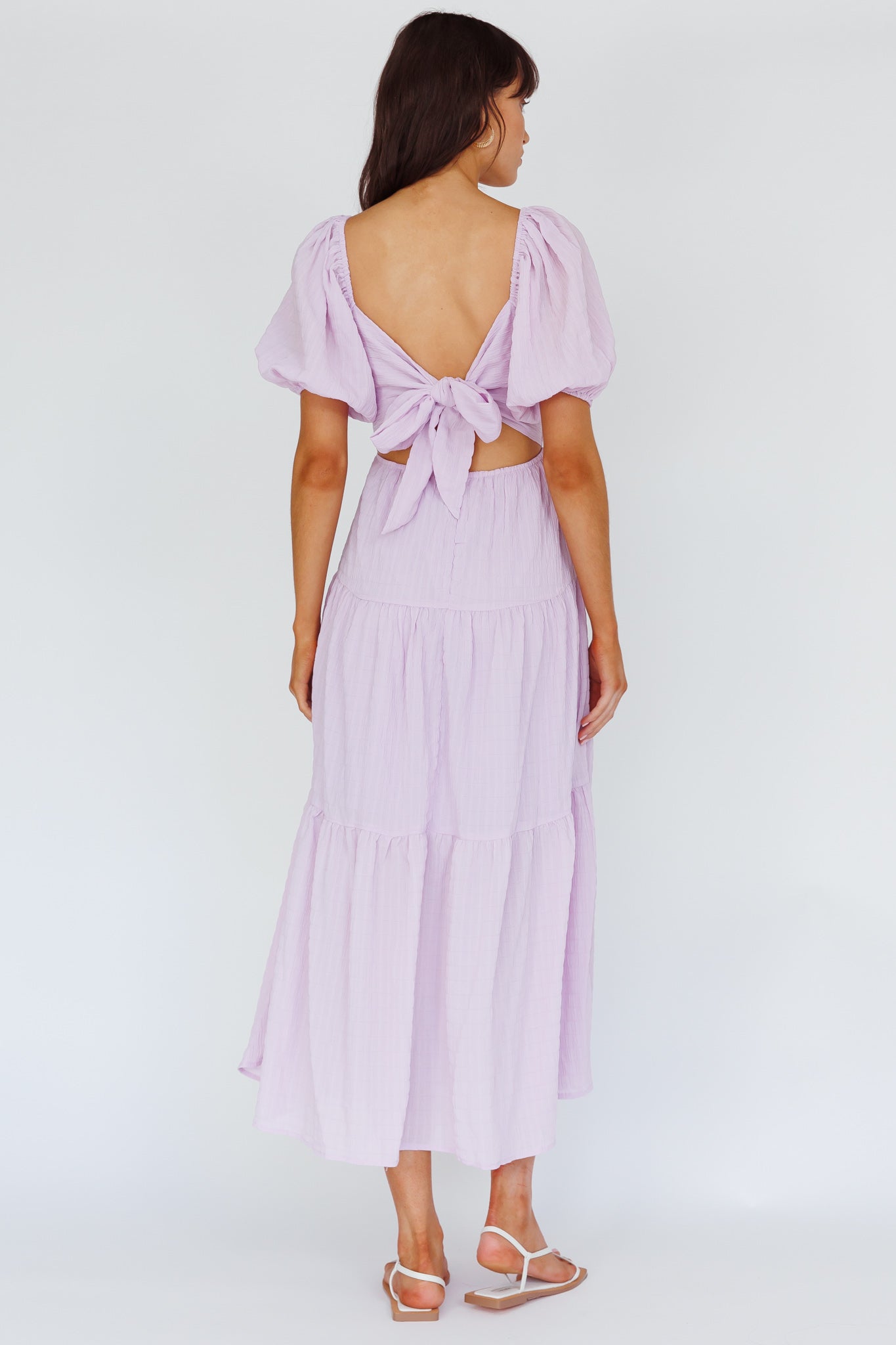 Breeze through your weekend in our pretty Royce midi dress. Featuring a sweet lilac hue and bow tie in the back. It's perfect for Saturdays strolling the farmers' markets or lunch dates with your girls. Team it with white mules to complete the look.