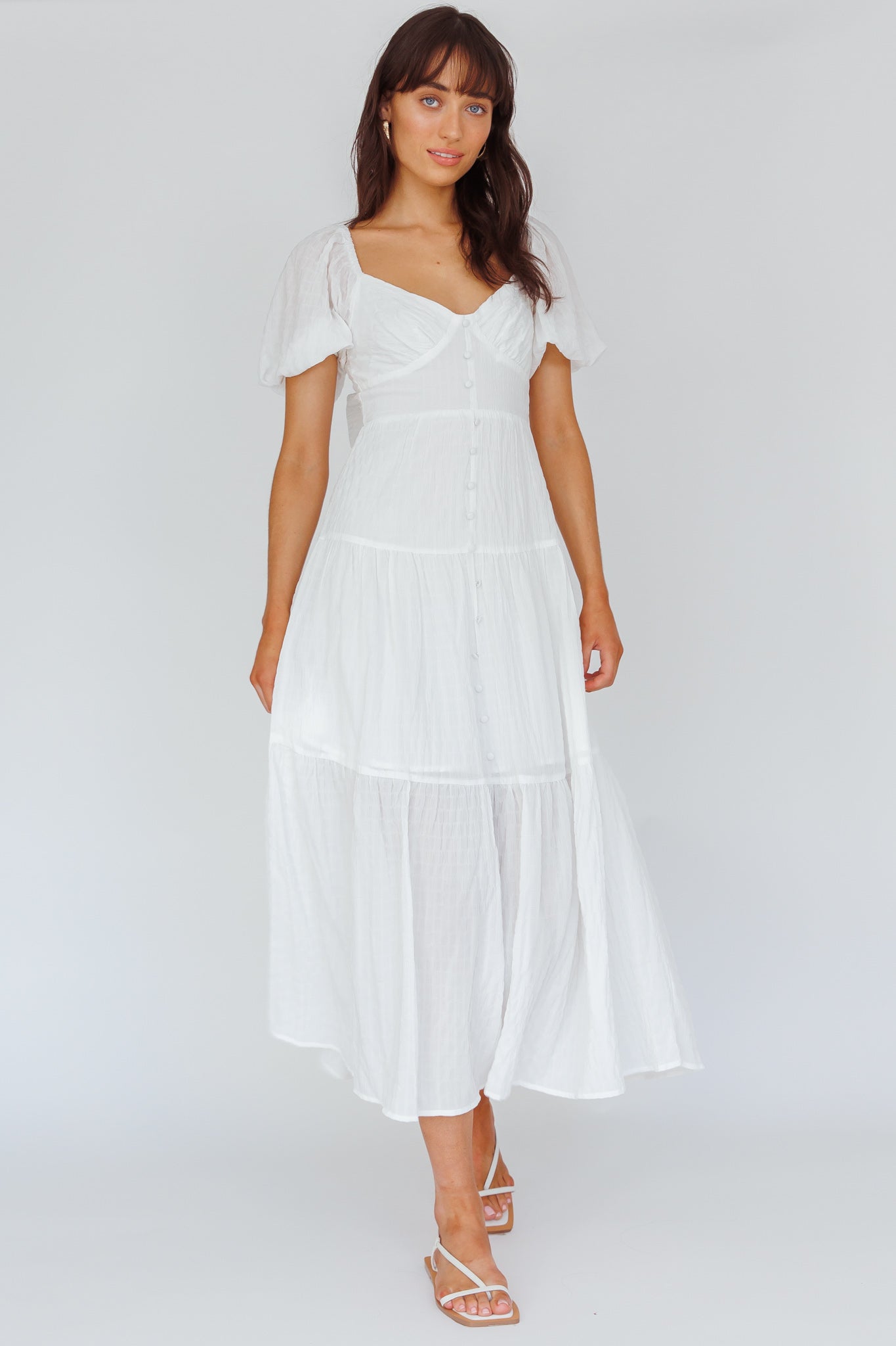 Breeze through your weekend in our pretty Royce midi dress. Featuring a sweet bow tie in the back, it's perfect for Saturdays strolling the farmers' markets or lunch dates with your girls. Team it with white mules to complete the look.