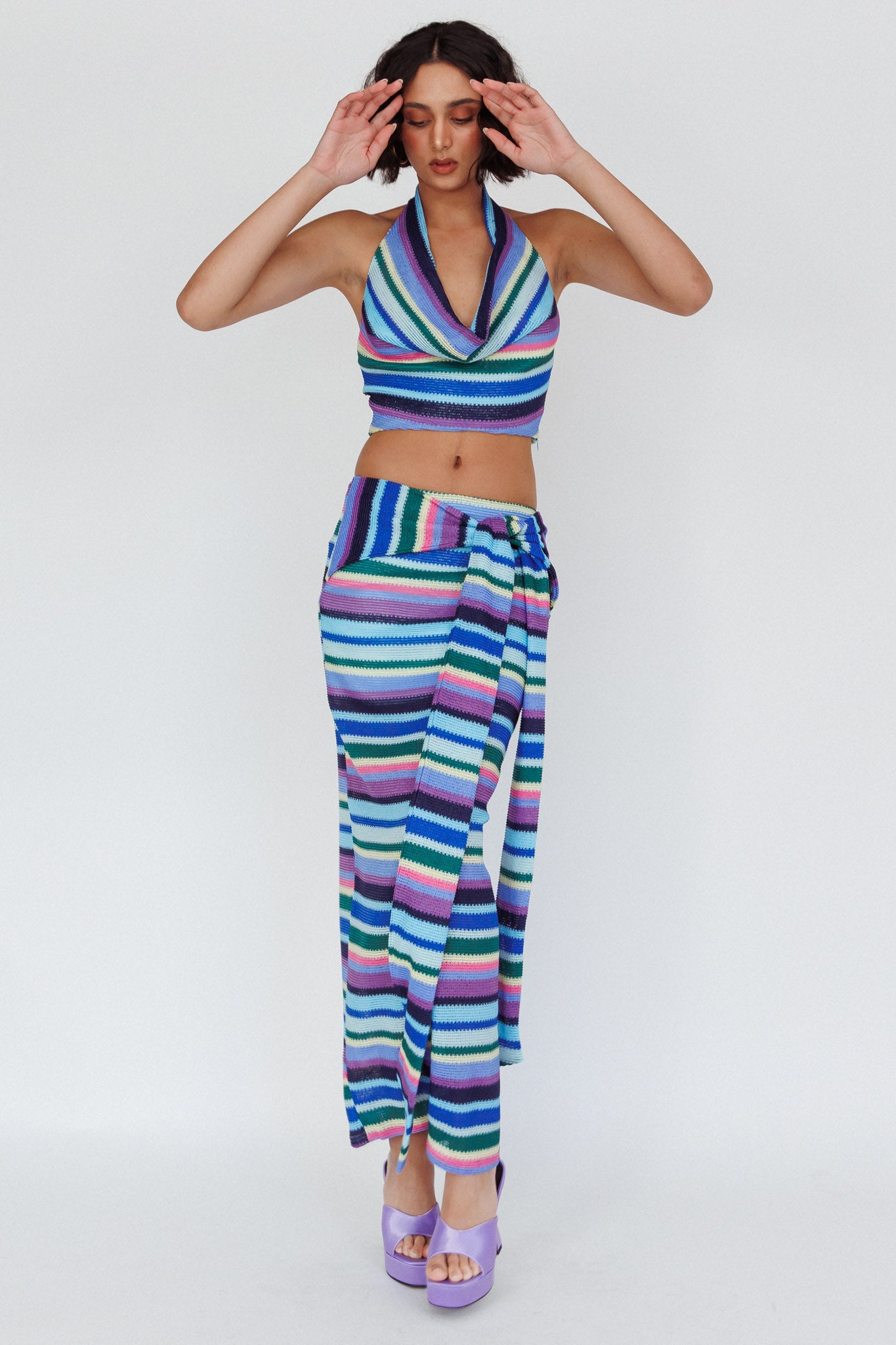 You'll feel like packing your bags cause our Sammi skirt is giving us all the vacay vibes. Featuring a striped knit and maxi length, it's the perfect choice for a weekend away with bae. Team it with its matching crop top and sandals for a chic look.