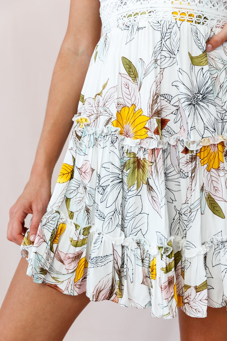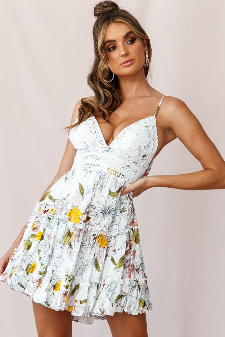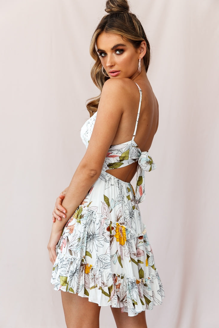 Sanctuary Applique Bust Tie-Knot Back Dress Floral Print White