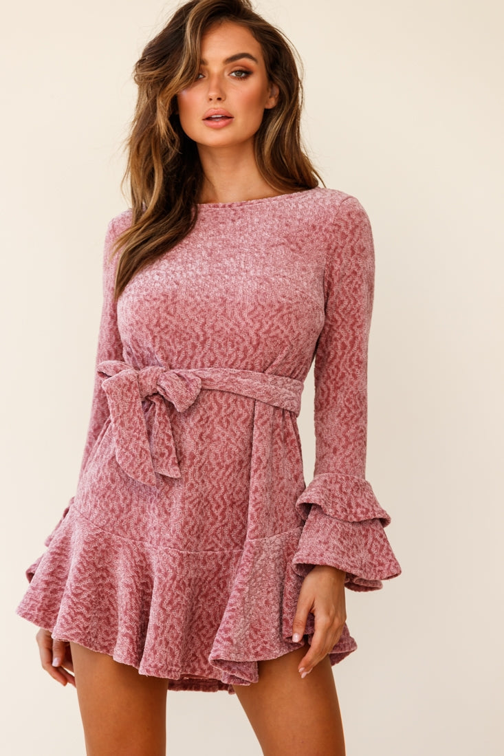 Saphira Long Sleeve Fluted Hem Knit Dress Blush