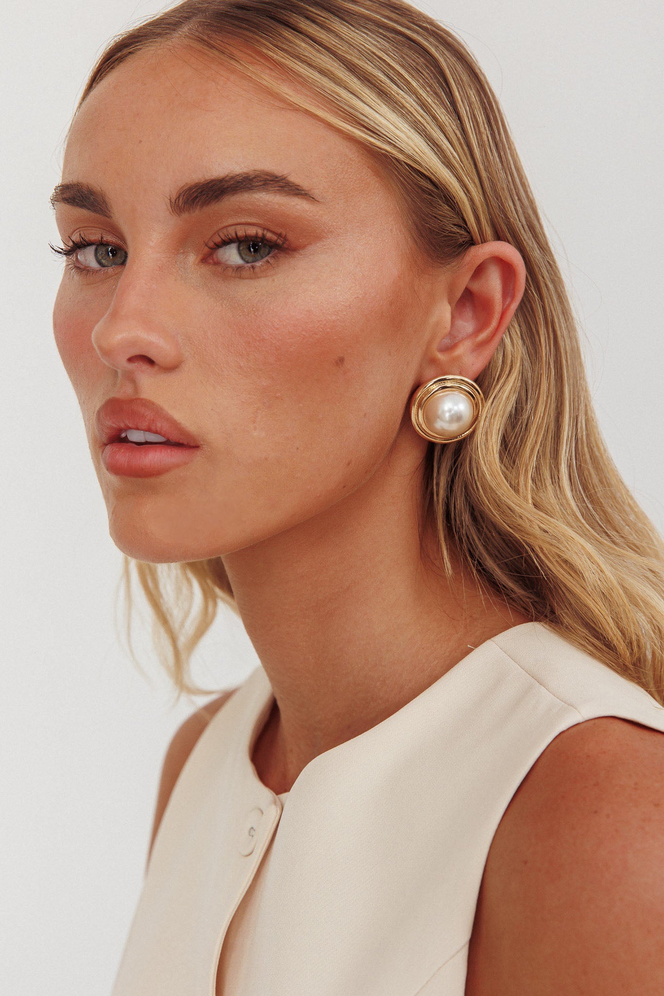 Complete your look with our stunning Sara earrings. They feature a pretty pearl accent and gold trim and are perfect for a date night or a glam event. Team them with our Well Versed dress for a look that will make jaws drop.