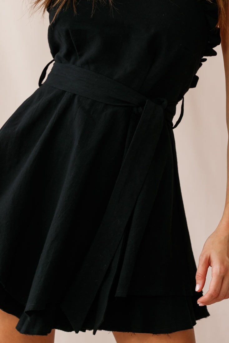Make an entrance in our gorgeous Sarina dress. Featuring a pretty halterneck style with a sexy, ruffle-trimmed open back, belted waist tie and layered, raw edge hem. Perfect for a night out with the girls teamed with pointed-toe stilettos and a clutch. Get it, girl!