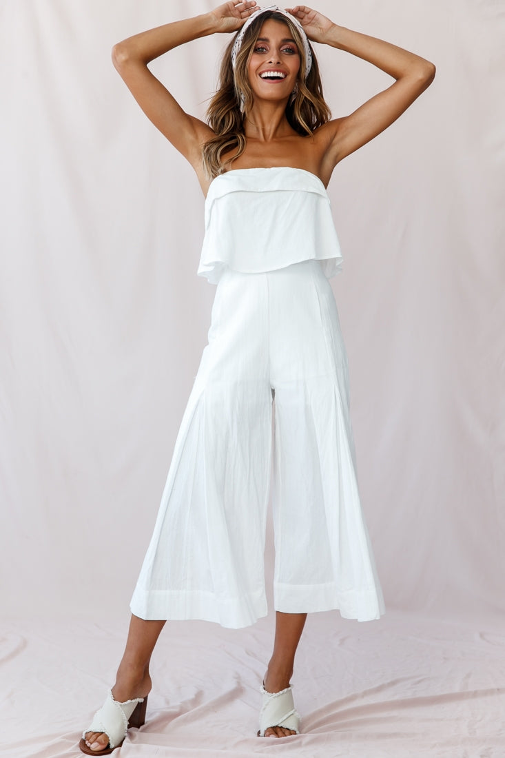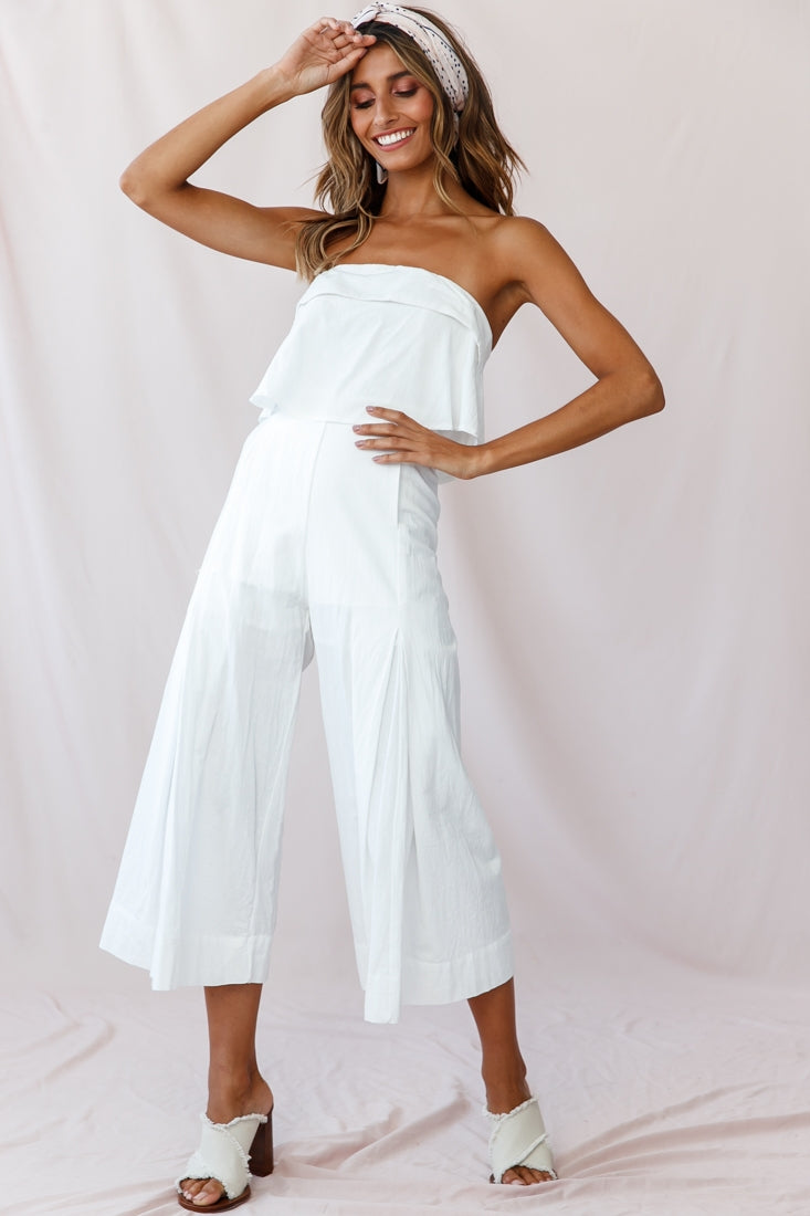 Saturday Layered Bandeau Wide Leg Capri Jumpsuit White