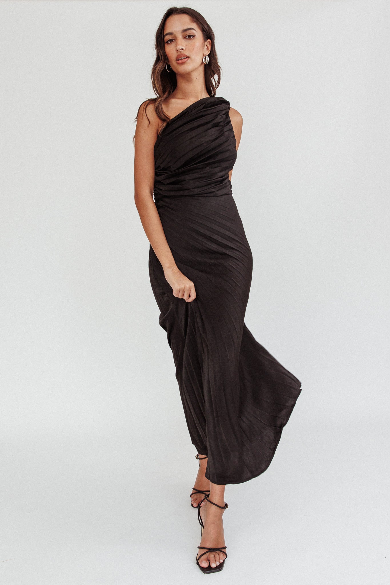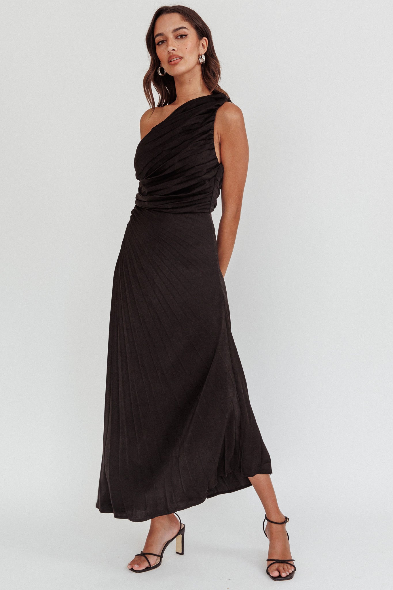 Scarlett One-Shoulder Pleat Maxi Dress Black