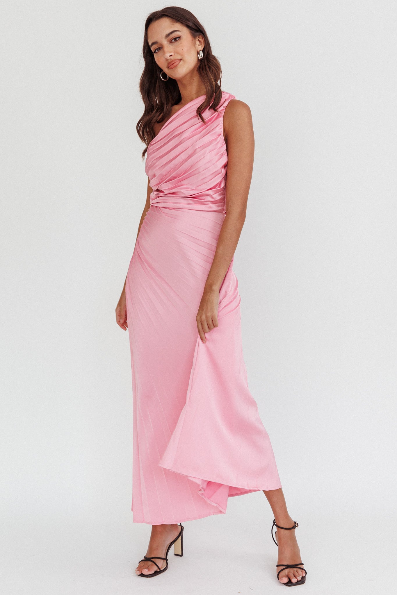Scarlett One-Shoulder Pleat Maxi Dress Pink