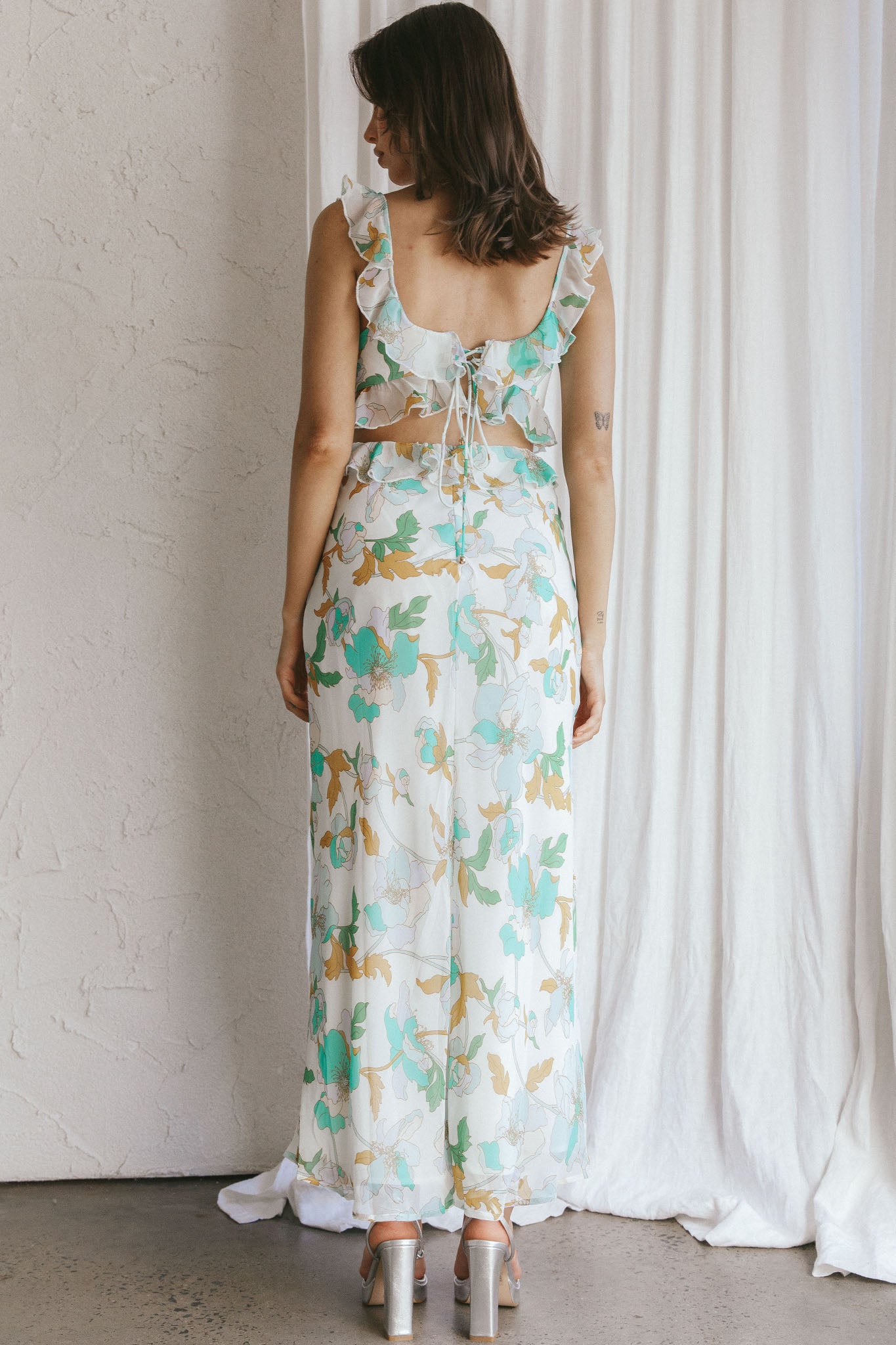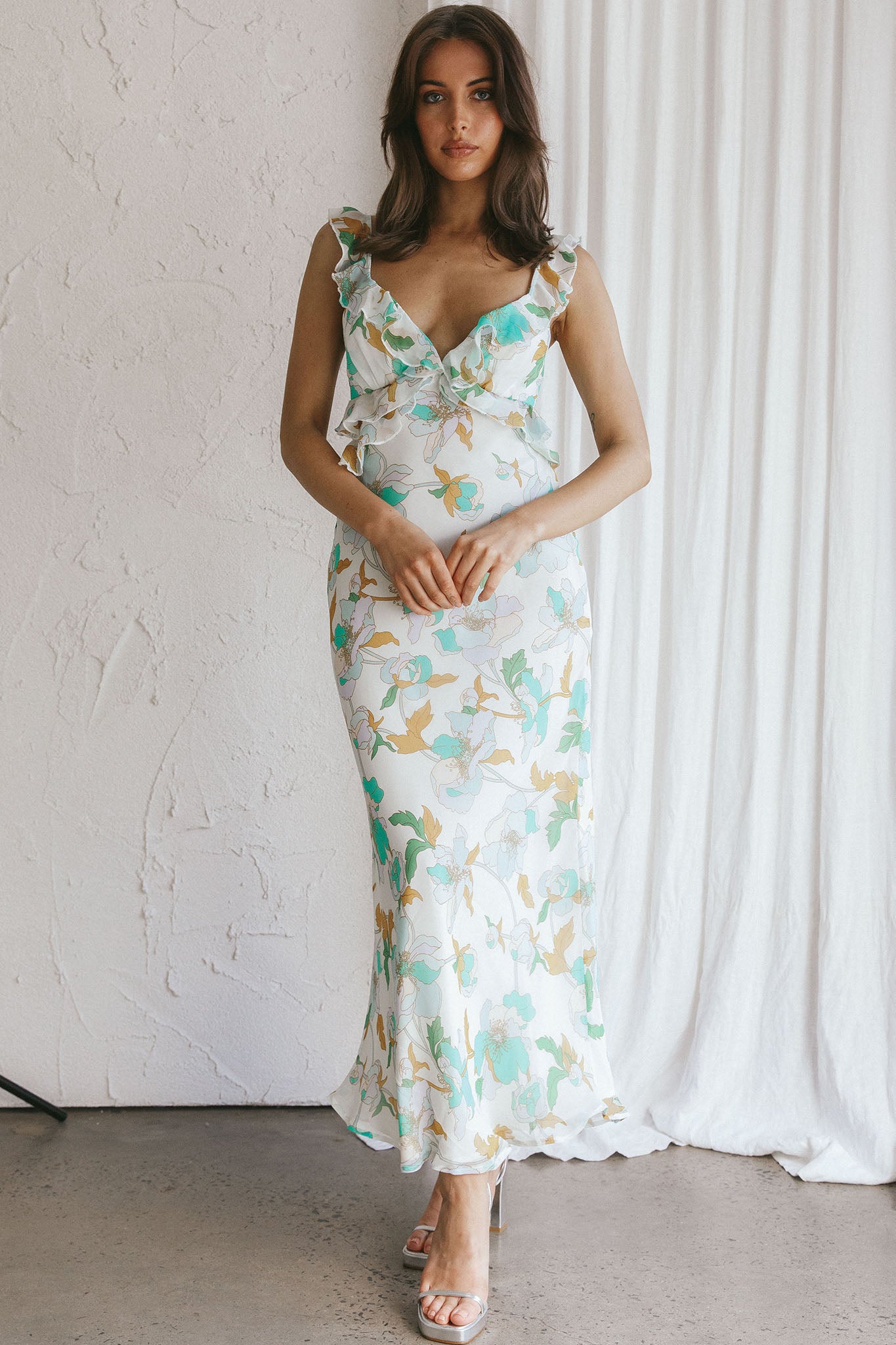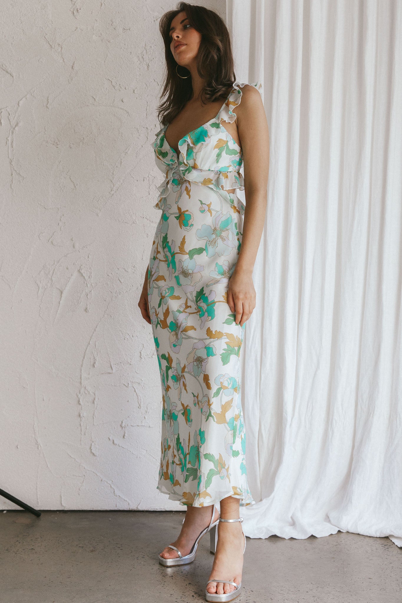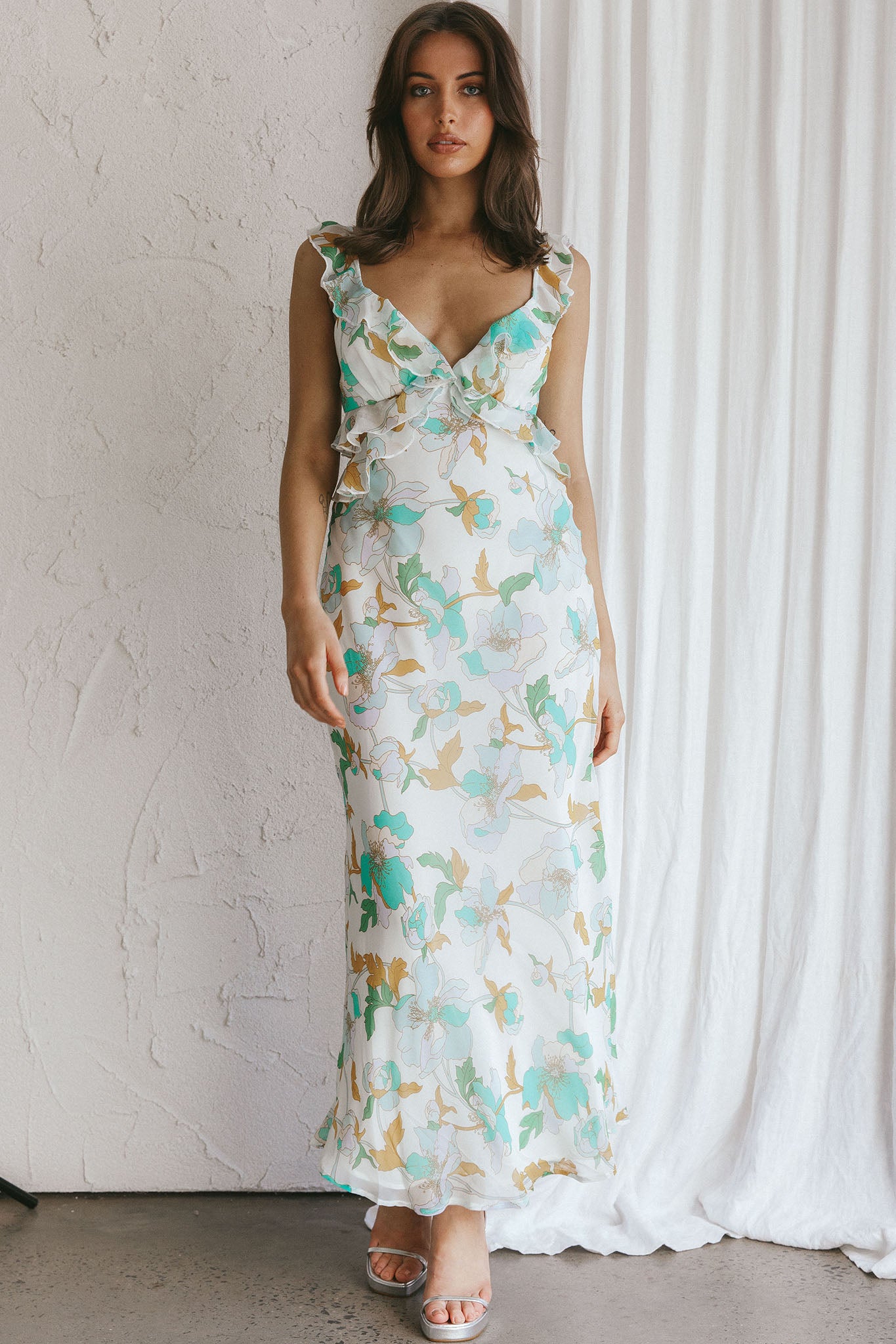 Second Chances Ruffle Trim Midi Dress Floral Mint