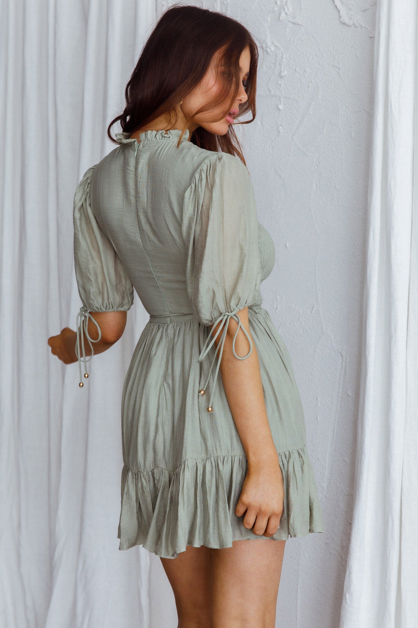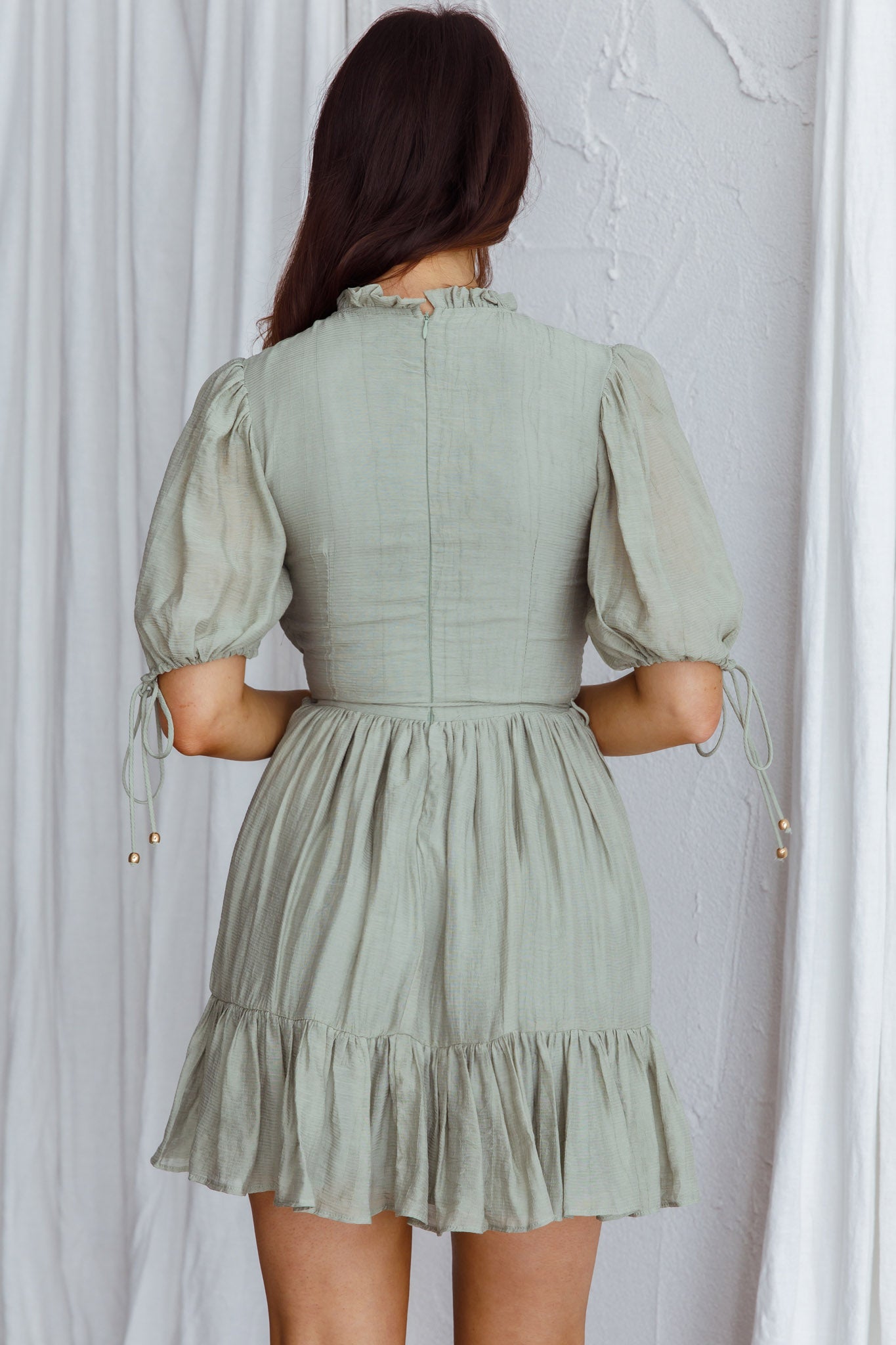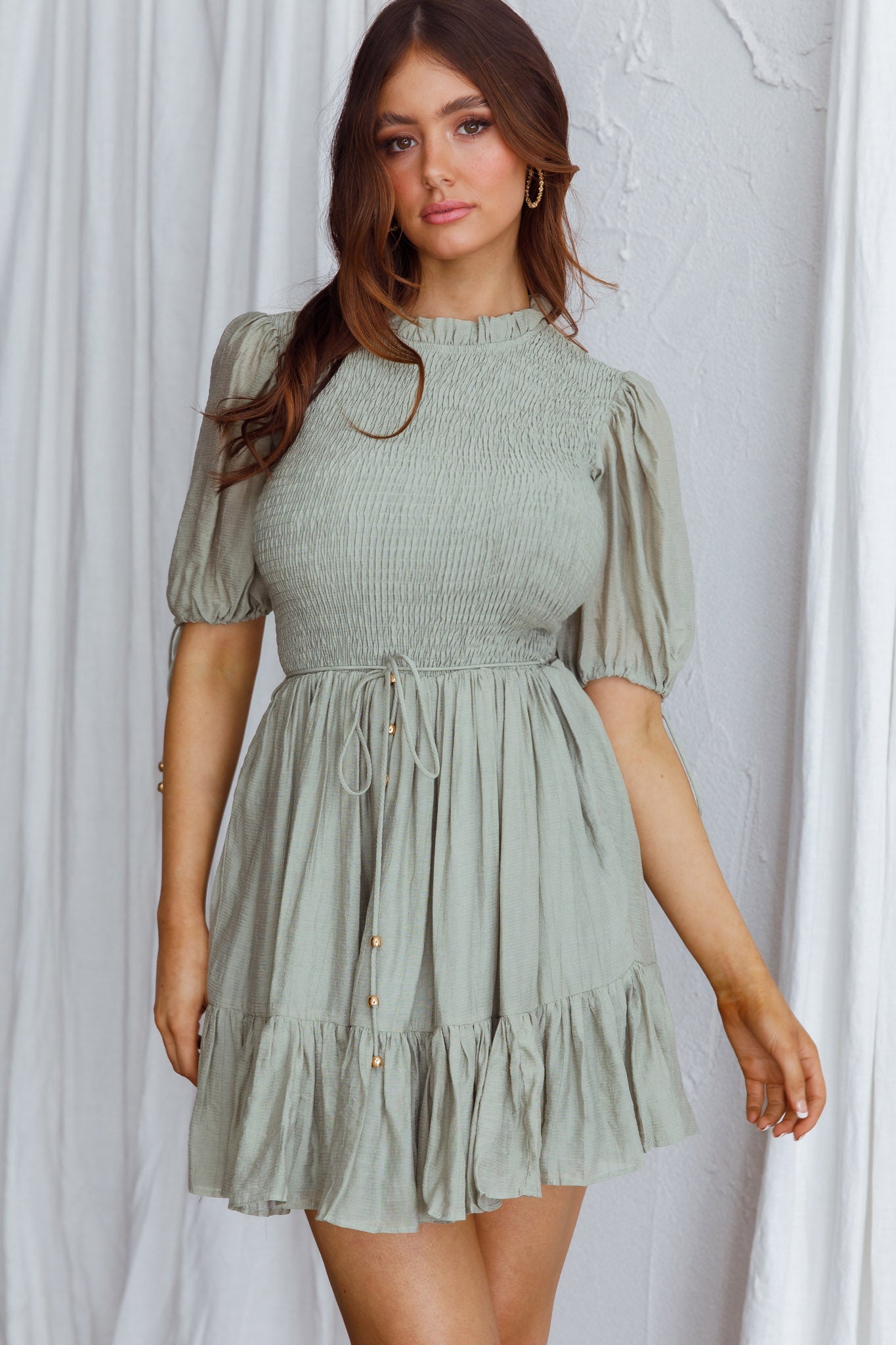 Secret Garden Puff Sleeve Smocked Bodice Dress Avocado