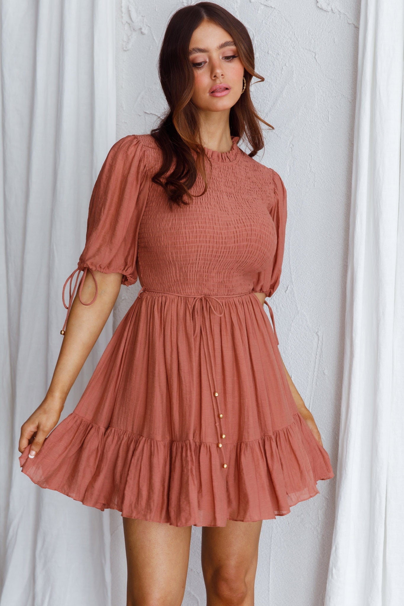 Secret Garden Puff Sleeve Smocked Bodice Dress Mocha