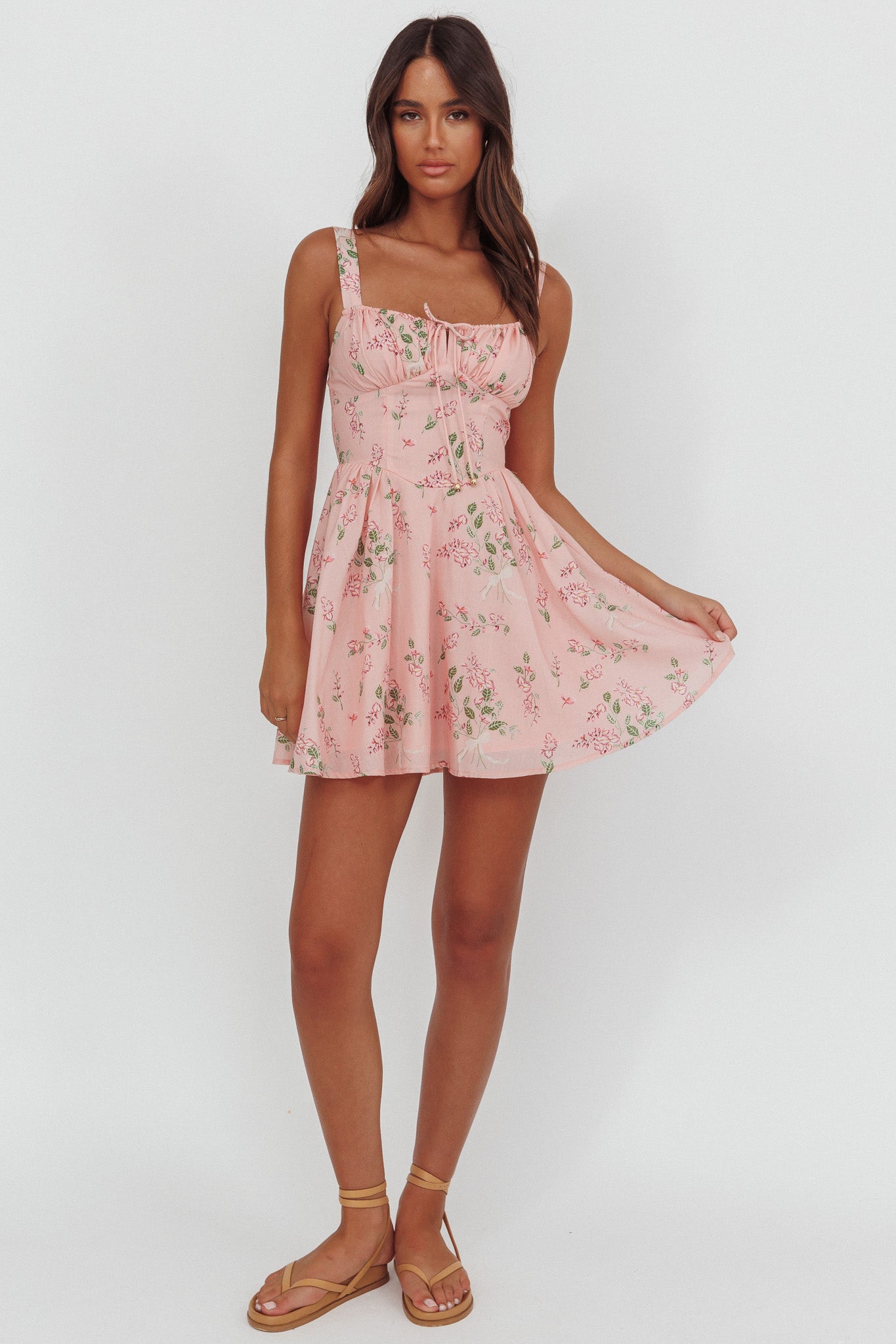 Seen The Light Tie Bust Mini Dress Floral Blush