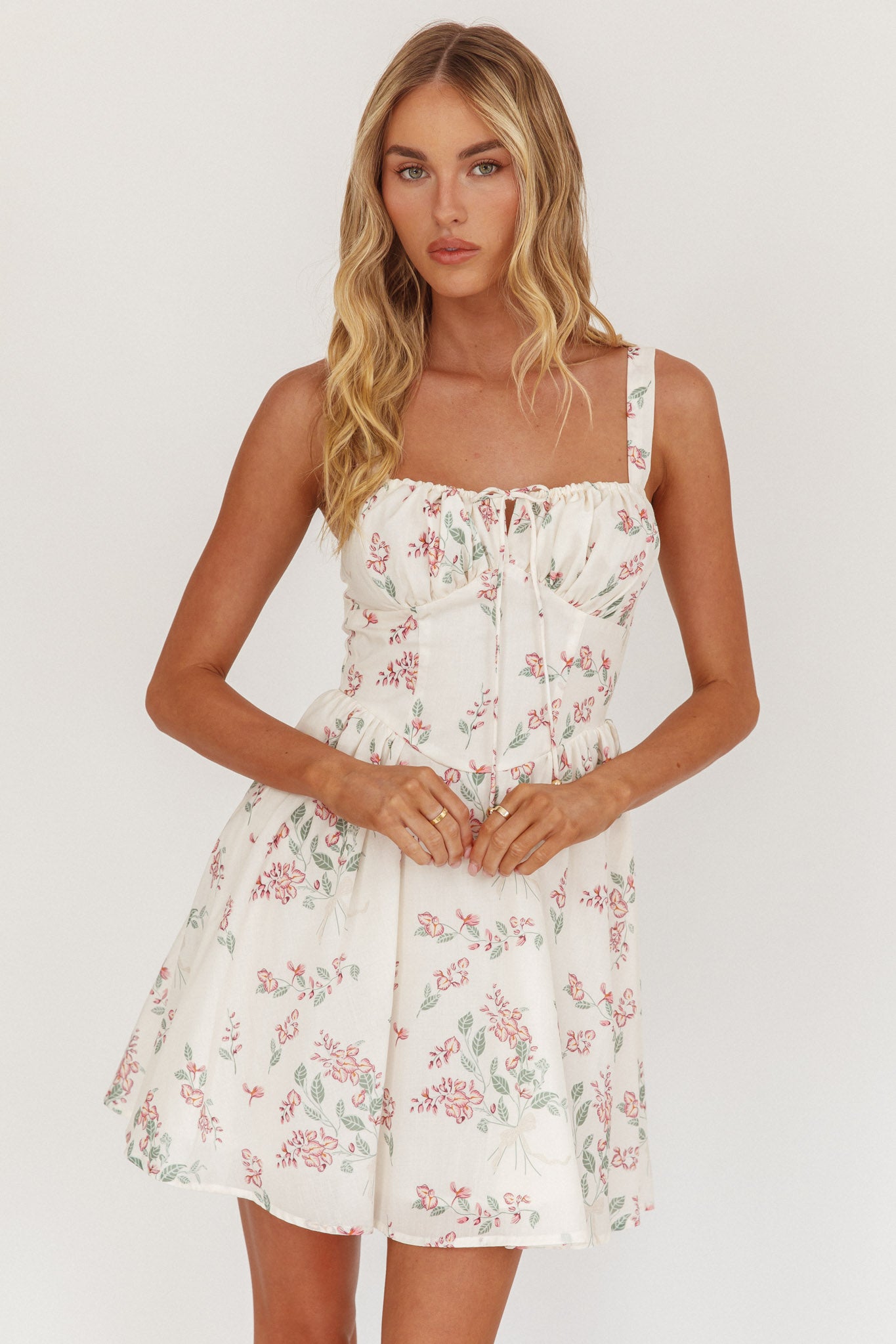 Seen The Light Tie Bust Mini Dress Floral Cream