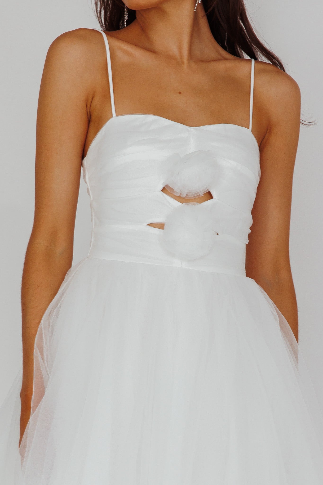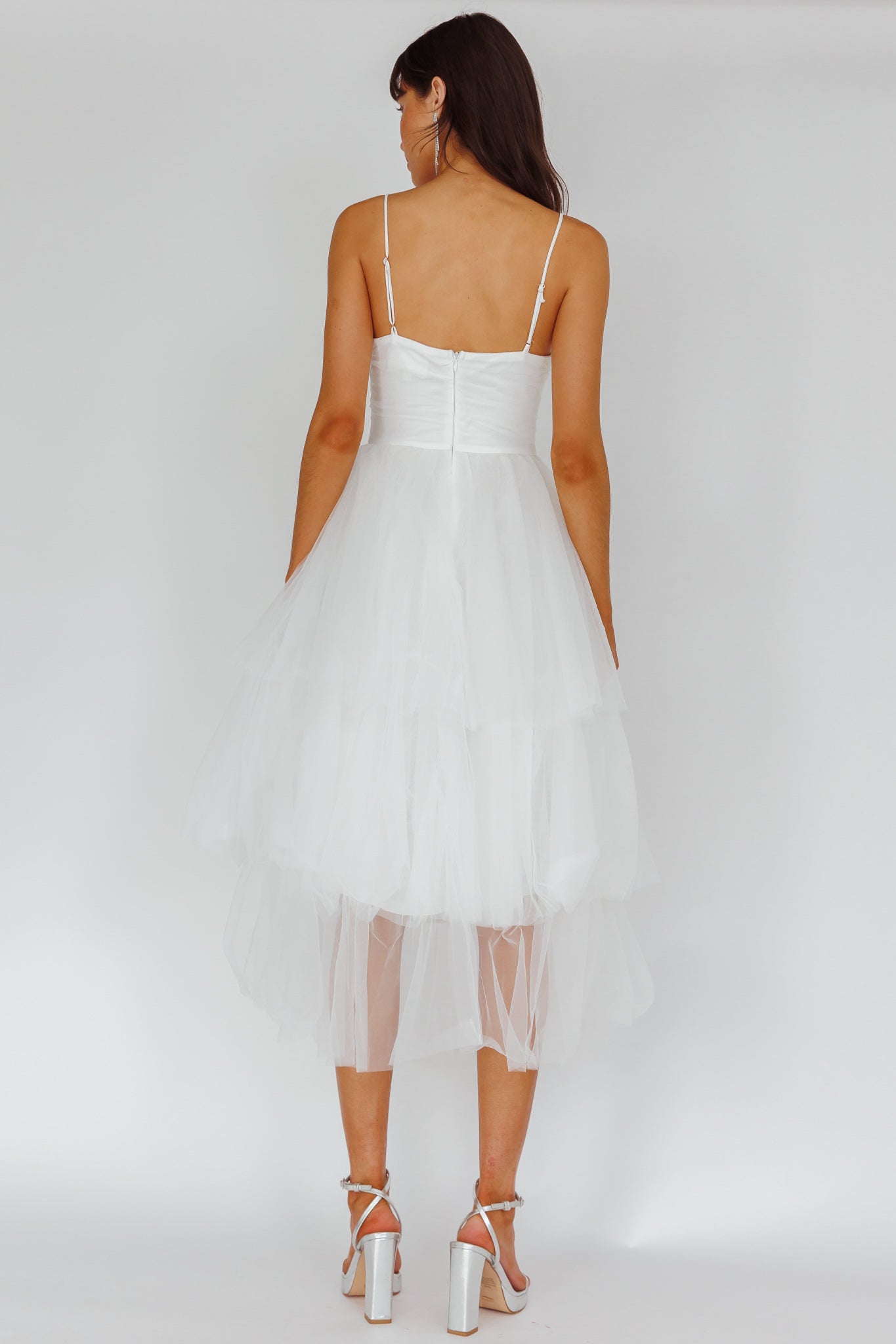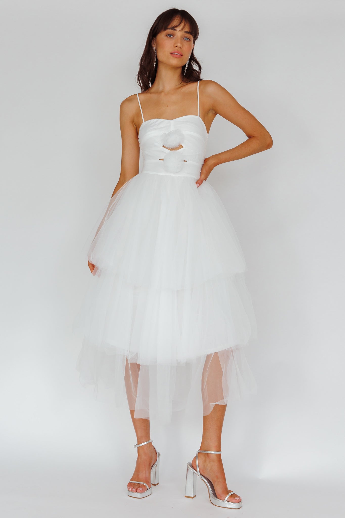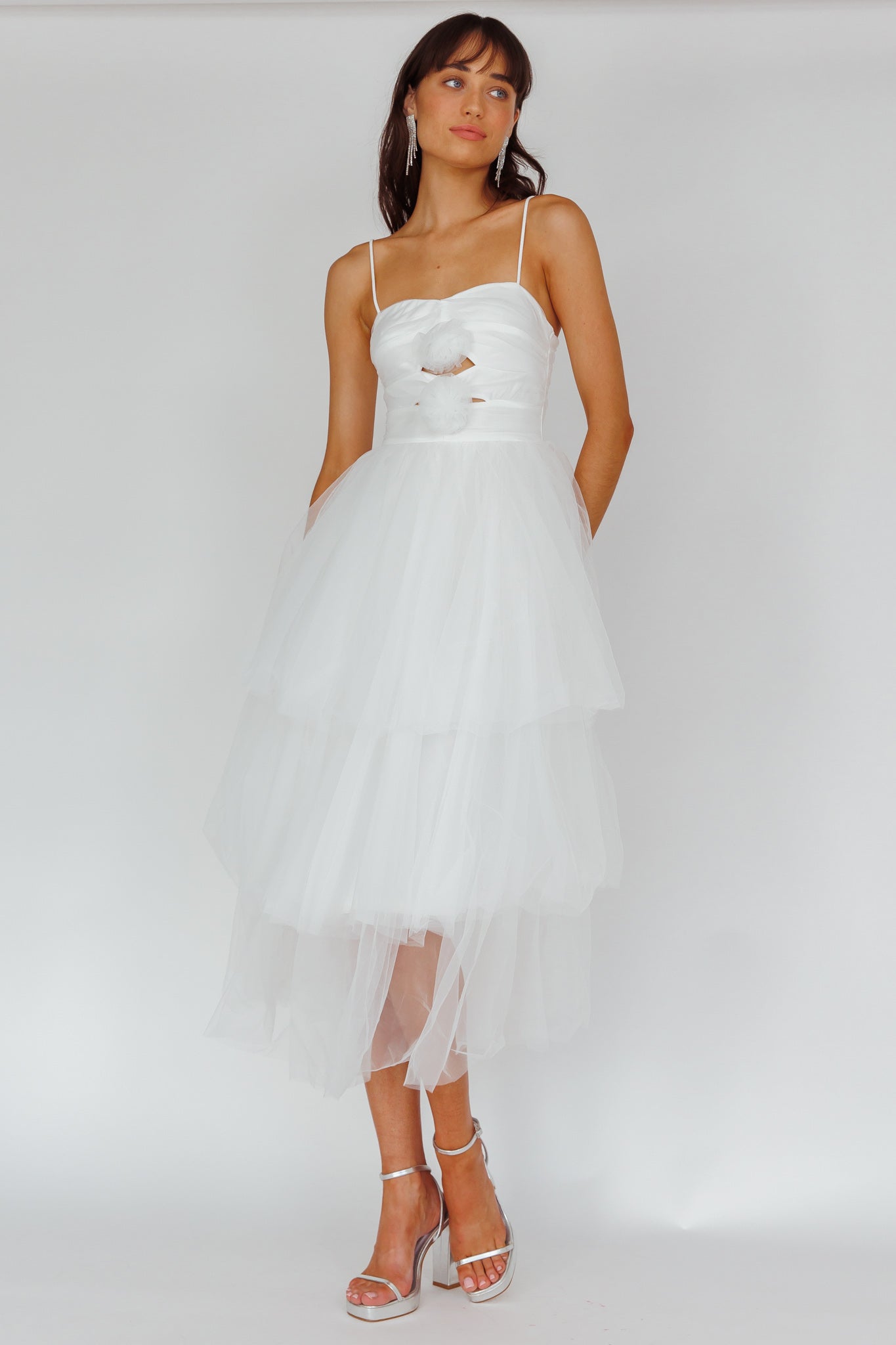 Make your grand entrance in our Seraphina midi dress. We are in love with its layered tulle skirt and rose decoration in the bodice. Perfect for a garden wedding or special birthday celebration. Team it with diamante heels and a satin clutch for a look we are loving.