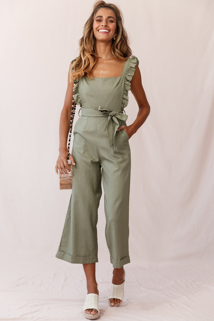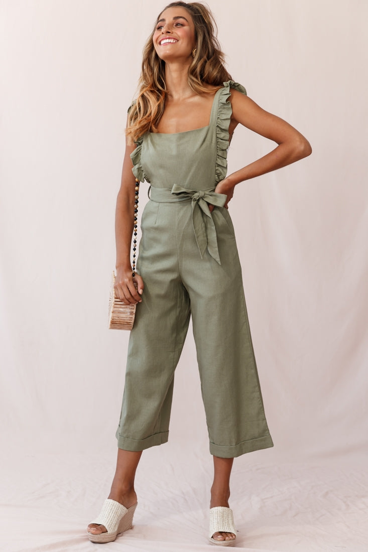 Every day will feel like a sweet sunny day in our Serenade jumpsuit. Perfect for strolling the farmers' markets or coffee dates with your bff, it features an adorable pinafore style, ruffle straps, wide leg pant and separate waist-tie belt. Wear it alone or over a crisp white, cap sleeve tee for a casual-chic look we are in love with.