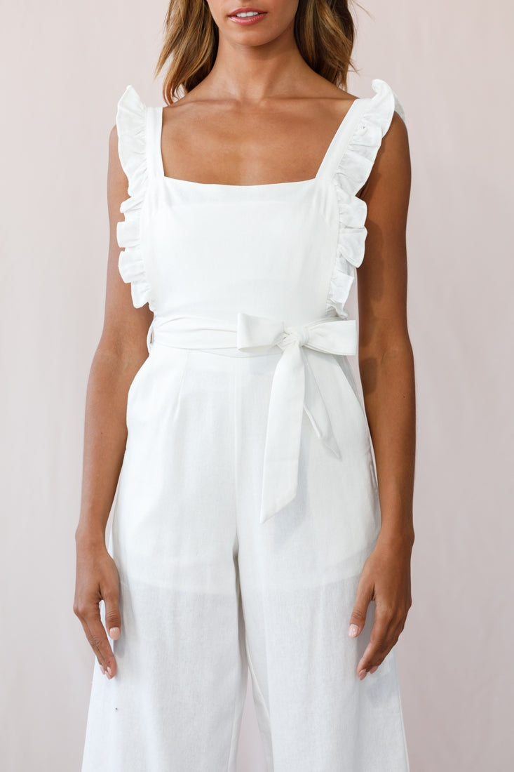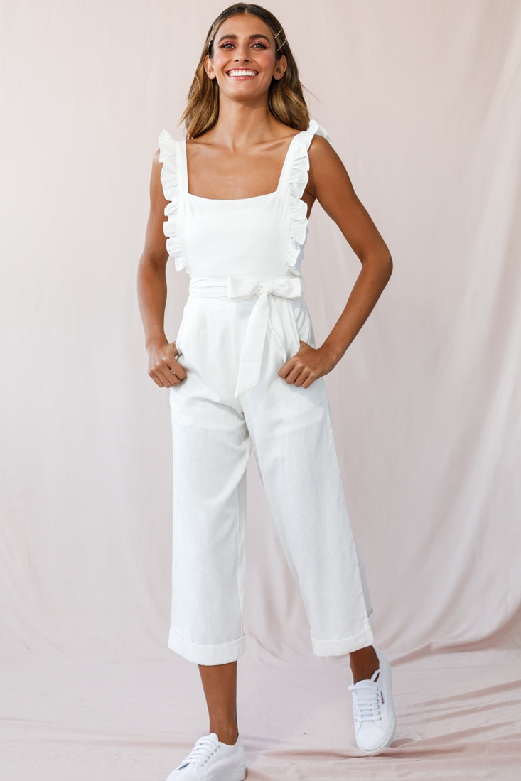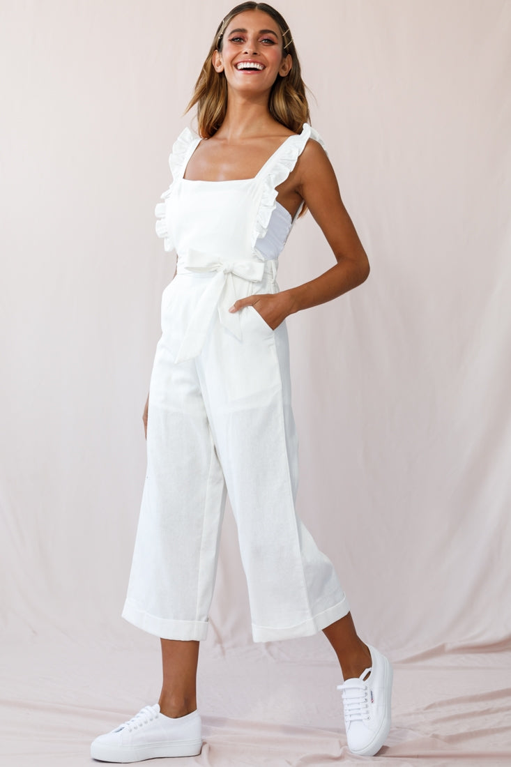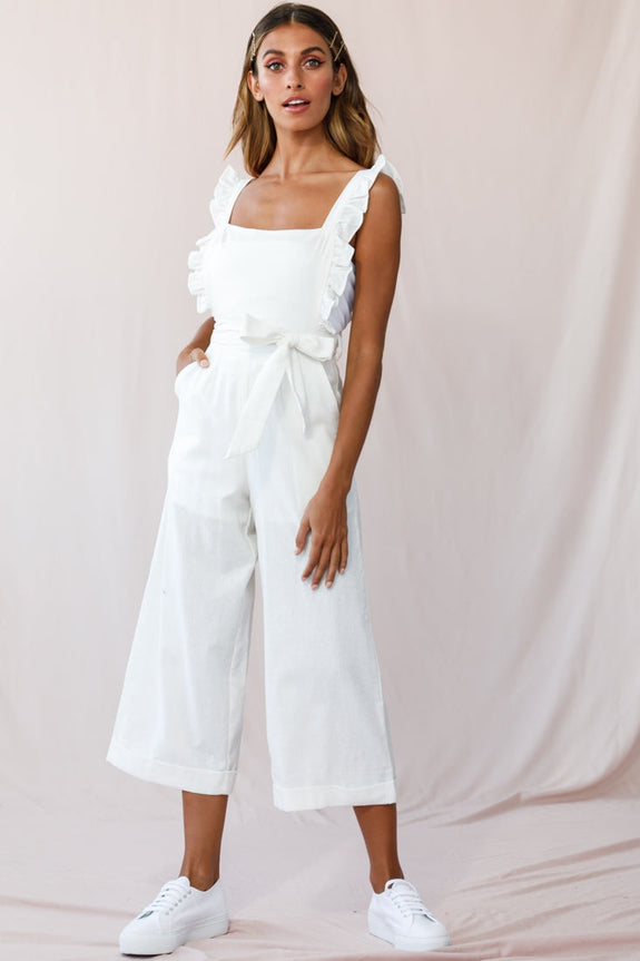 Serenade Ruffle Strap Pinafore Jumpsuit White