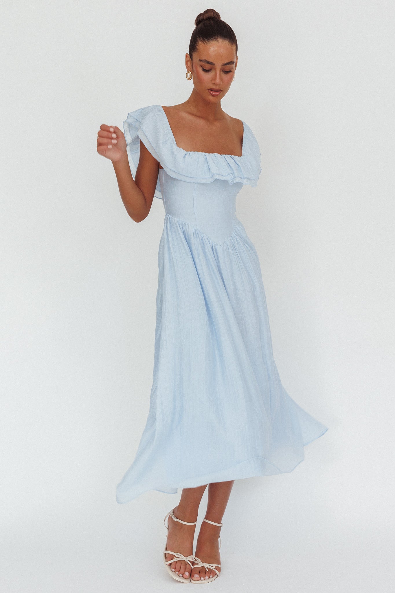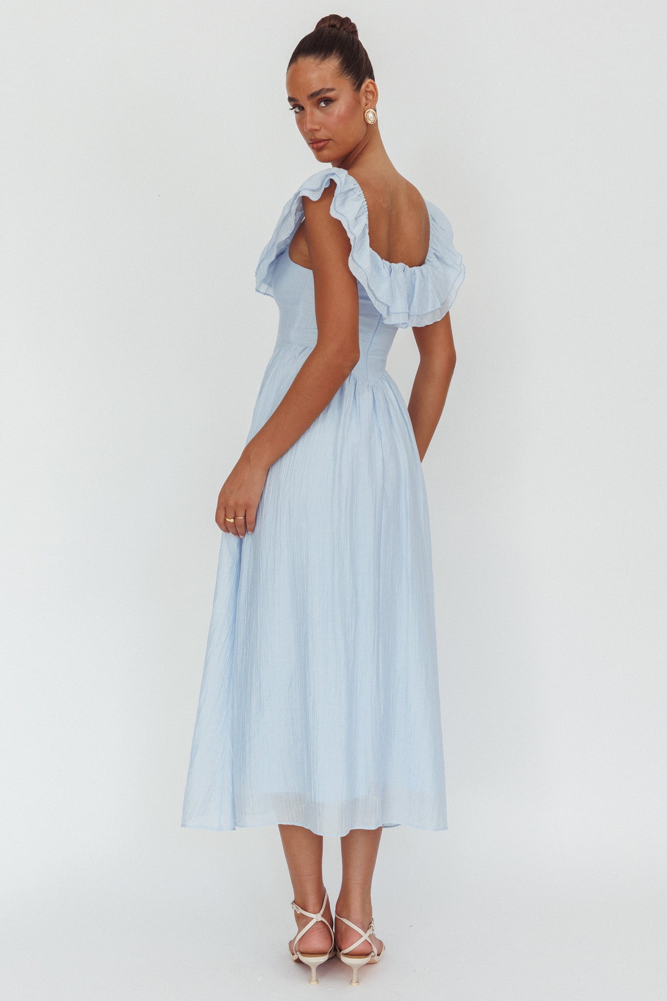 Twirl the day away in our gorgeous Serinah maxi dress. It features an on-trend basque waist and a pretty off-shoulder frill. Wear it on a flirty date teamed with sandals and a tote for a look we are loving.