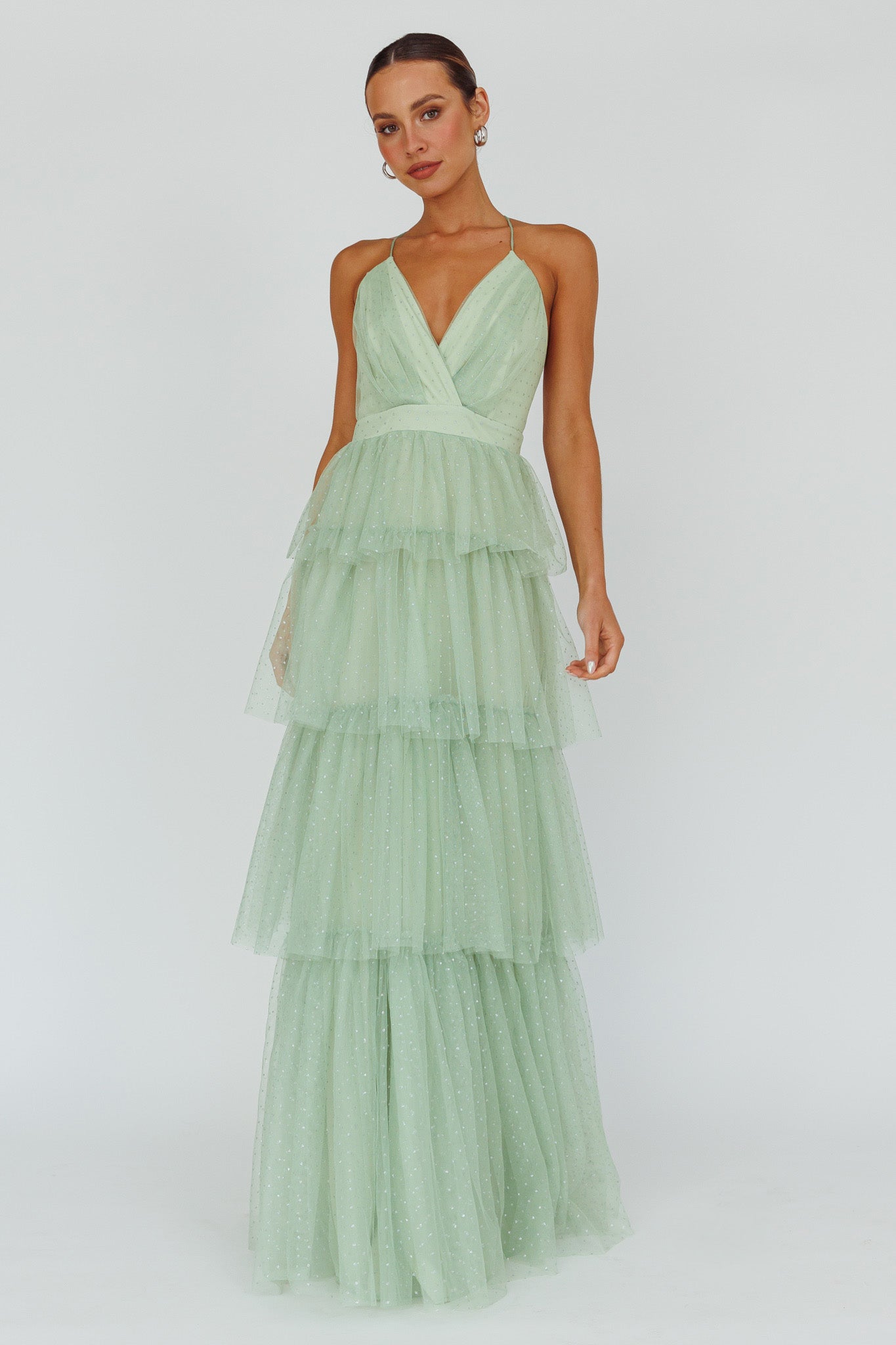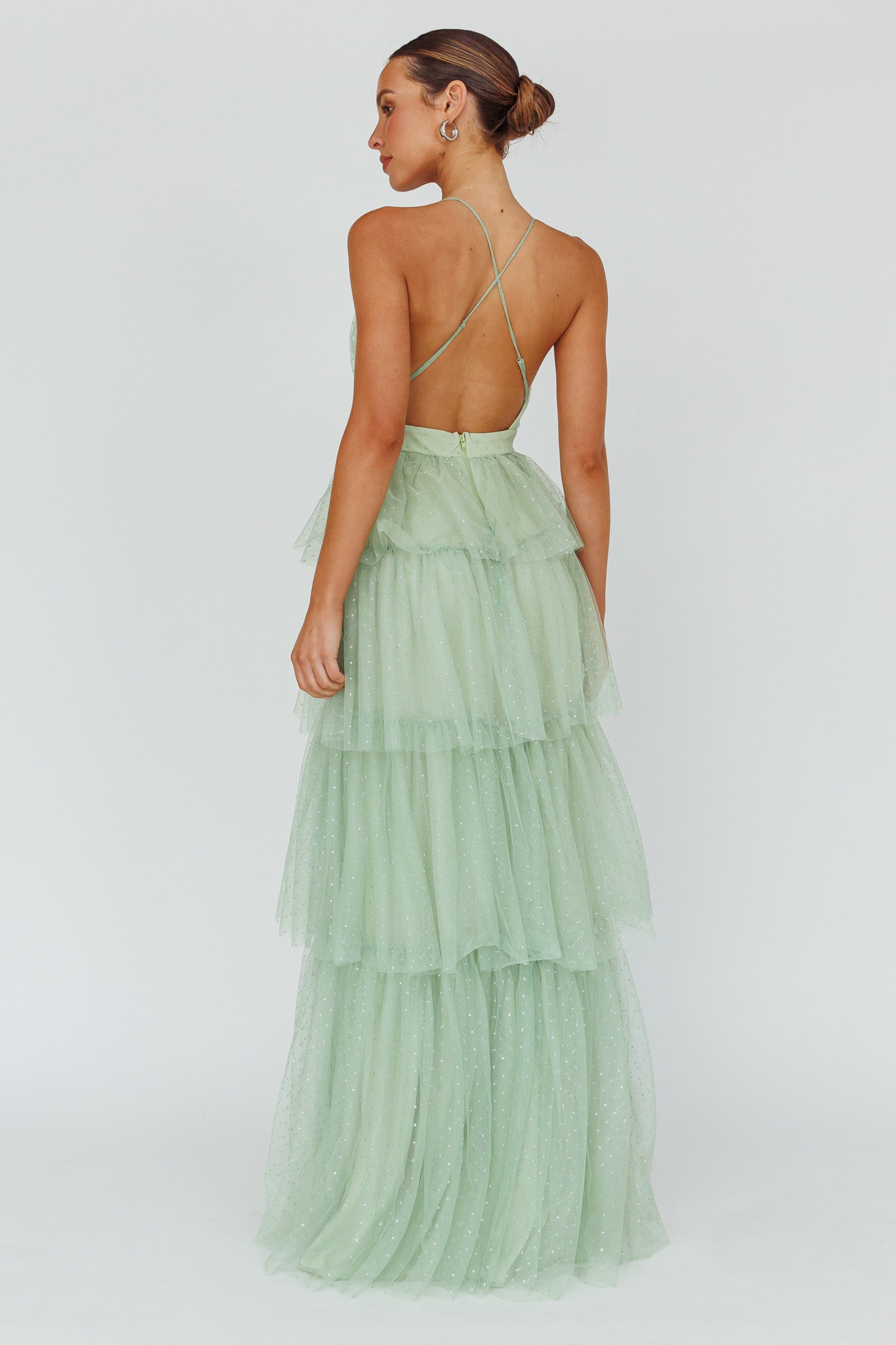 Seylah Tiered Frill Maxi Dress Glitter Sage