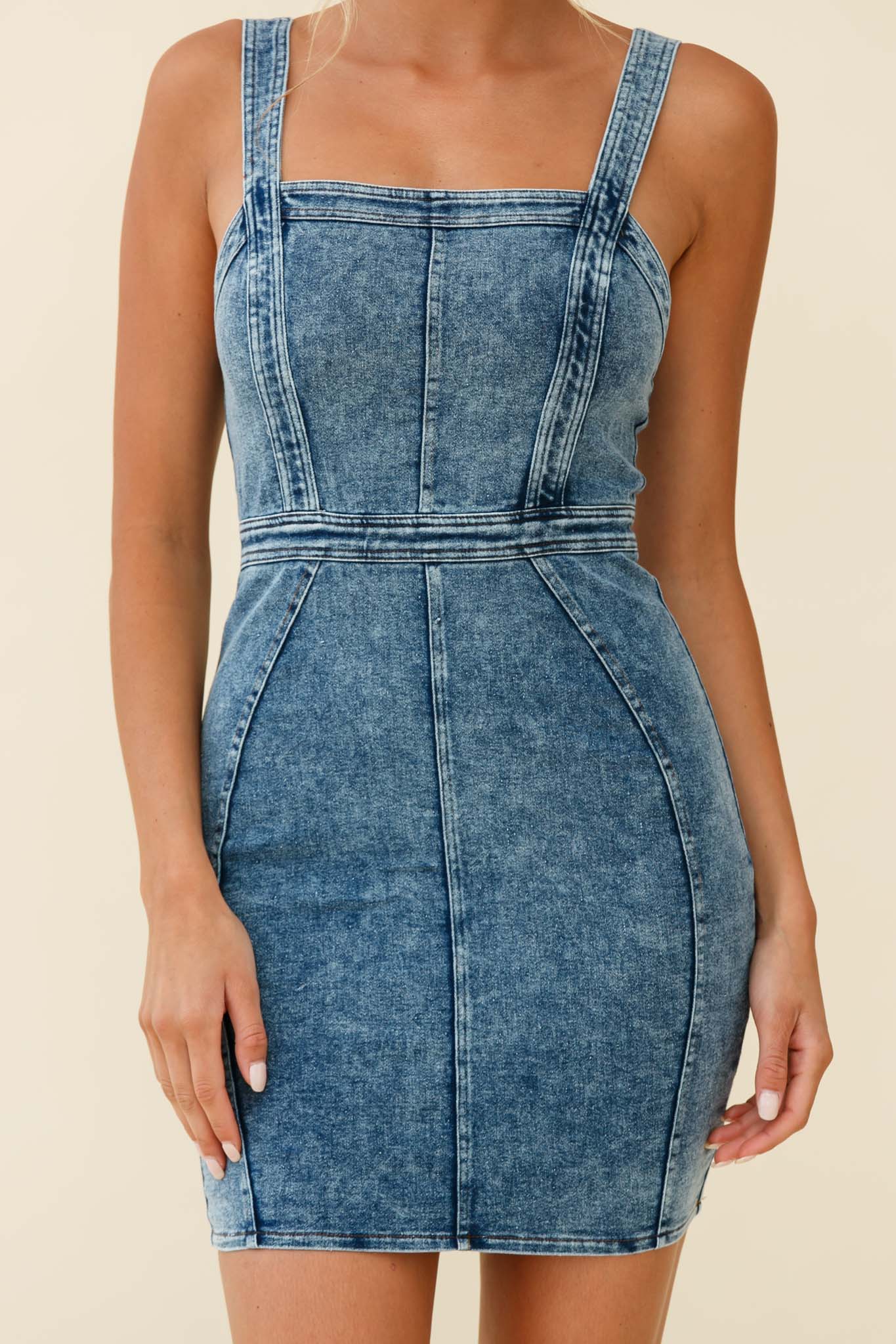 Steal the spotlight in our super hot Shalom dress. Featuring a structured bodycon fit, wide straps and zip up the back. We are loving the vintage washed-look denim fabric. Perfect for a flirty date night teamed with your fave mules and gold hoop earrings. Super cute.