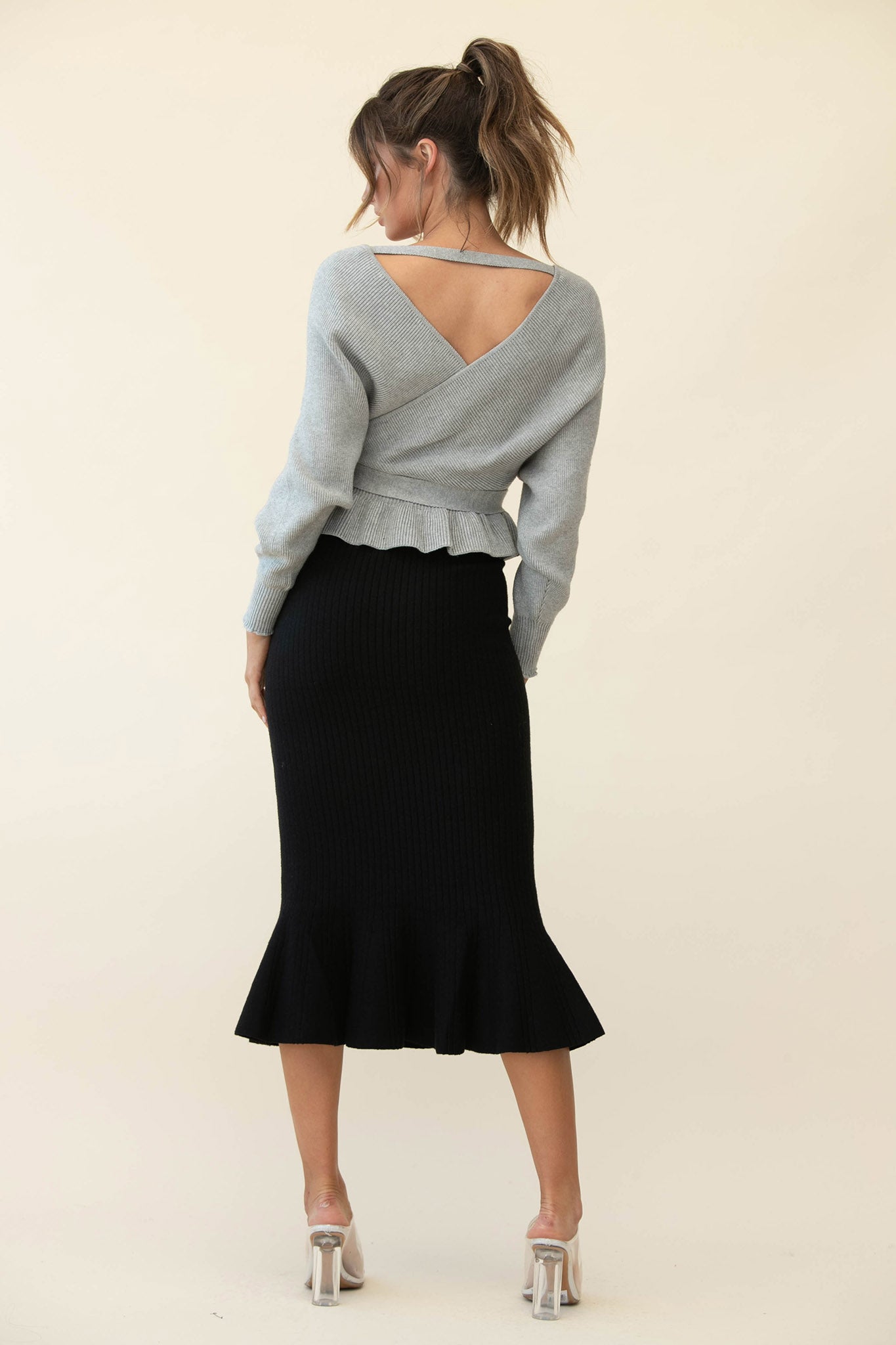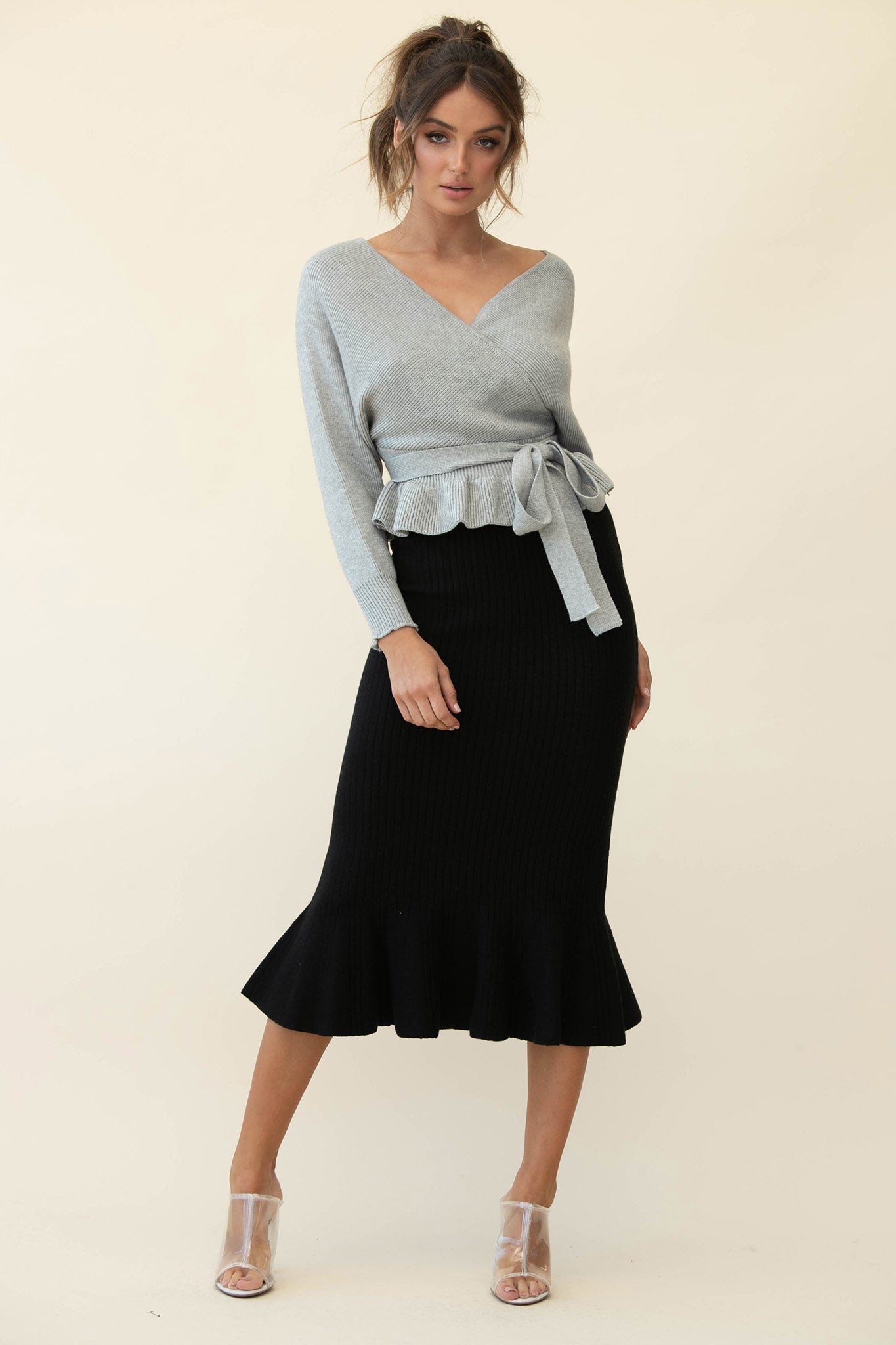 You're a style queen in our Shalon skirt. Featuring a stretchy, ribbed knit throughout, chic midi length and our favorite part, the gorgeous fluted hem! Enhance its feminine silhouette by teaming it with a sheer blouse and pumps.