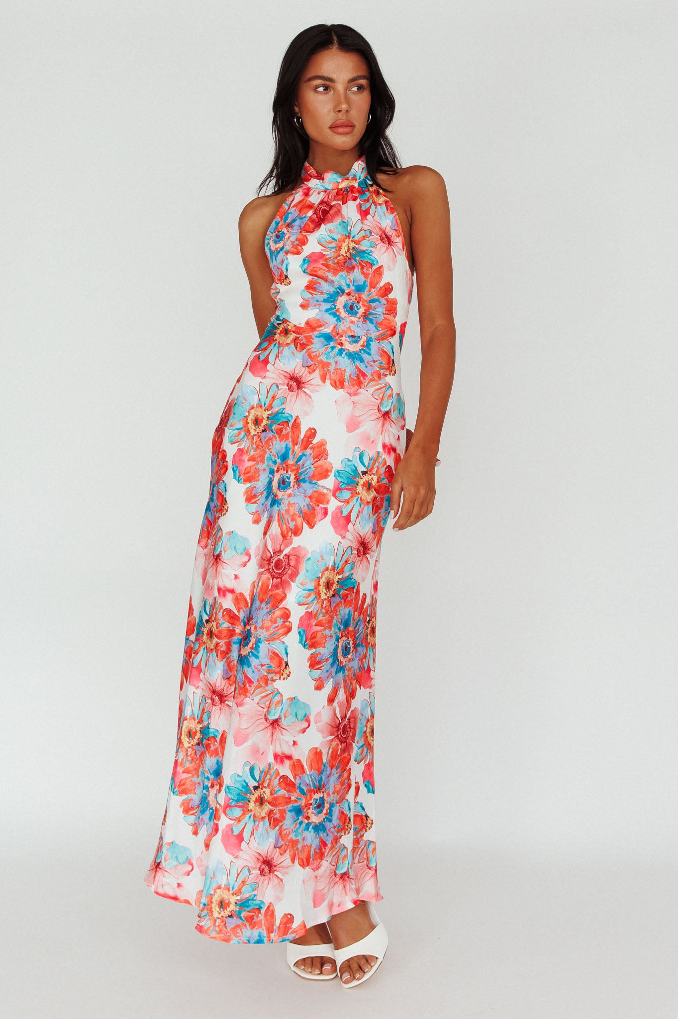 Make an entrance in our gorgeous Shana midi dress. Featuring a halter neckline and pretty floral print. Perfect for a wedding or special occasion. Team it with strappy heels and a clutch for an unforgettable look.