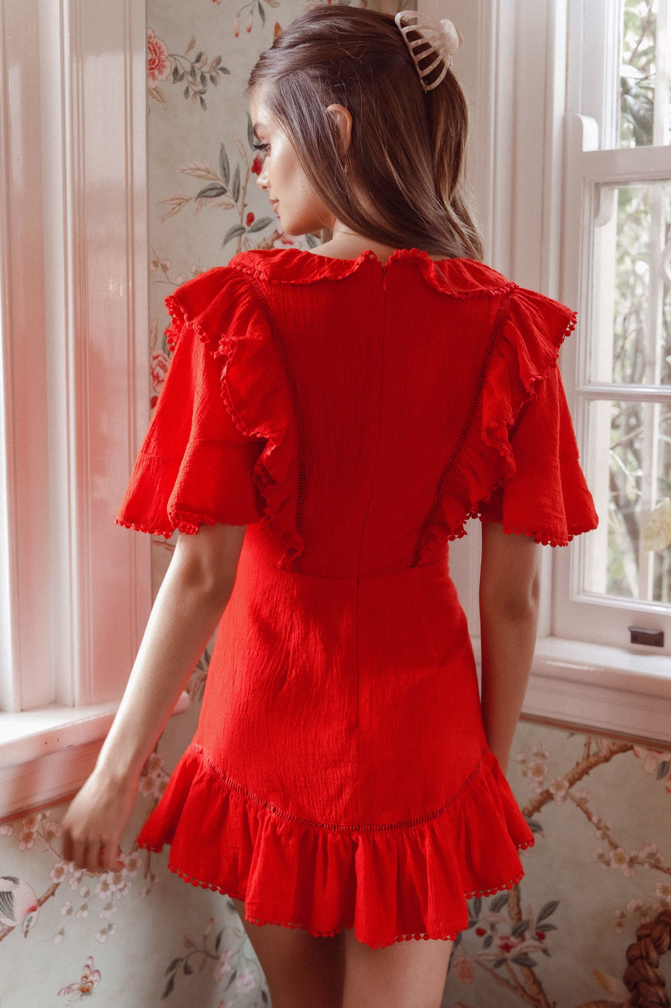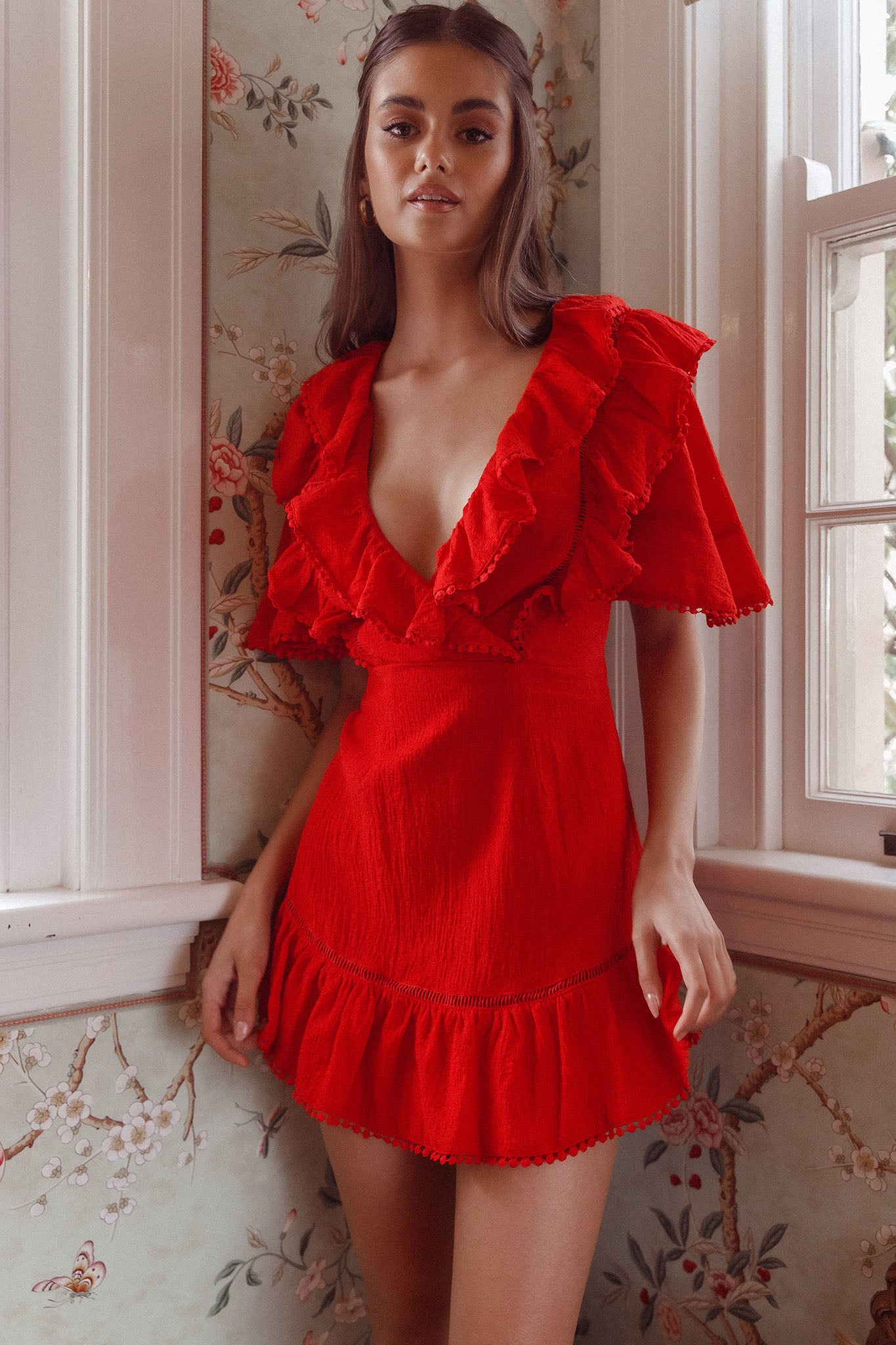 You'll look like you stepped out of Heaven in our dreamy Shay dress. We are in love with its feminine ruffle detail and circle lace trim. Perfect for a romantic date night or birthday celebration. Team it with red heels and a clutch for a look we are loving!
