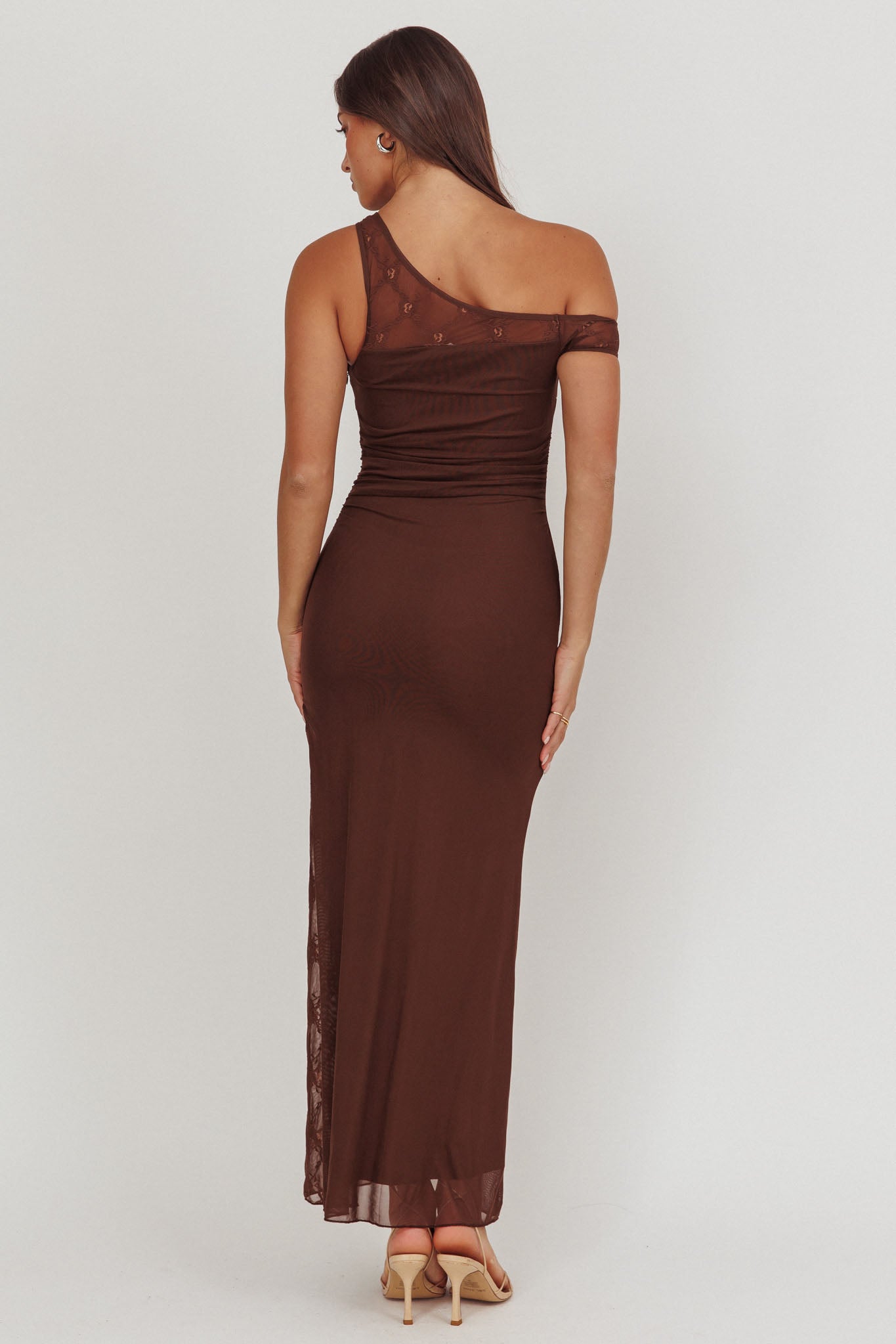 Sher One-Shoulder Lace Panel Maxi Dress Chocolate