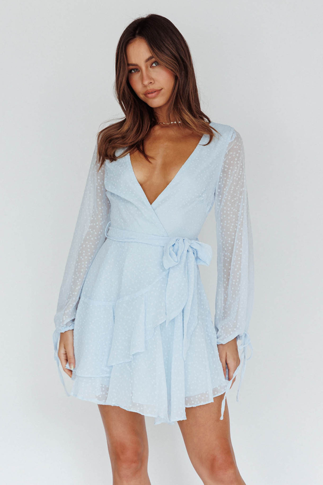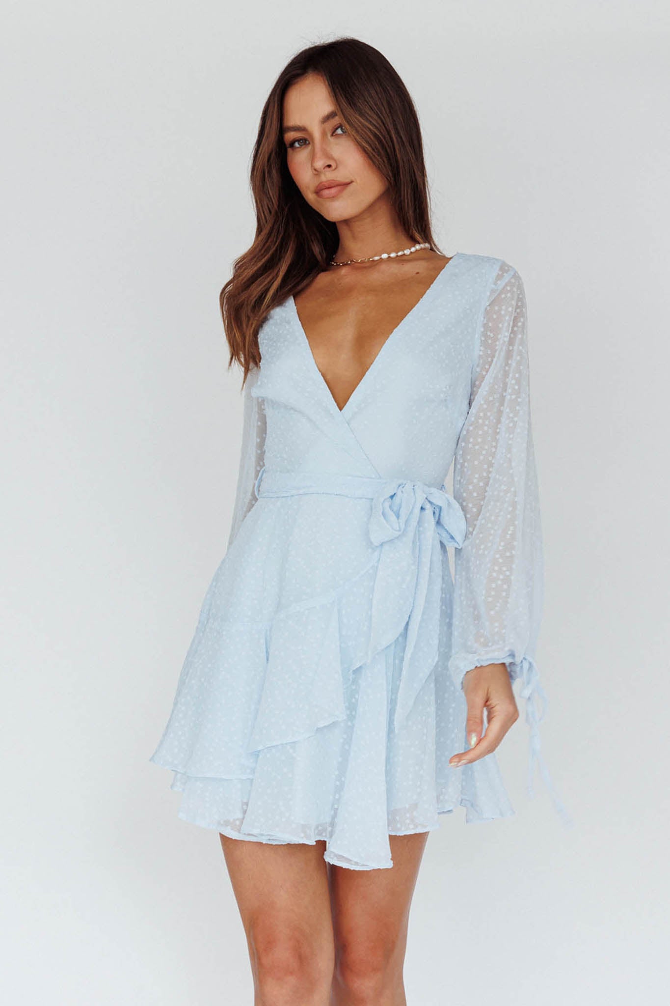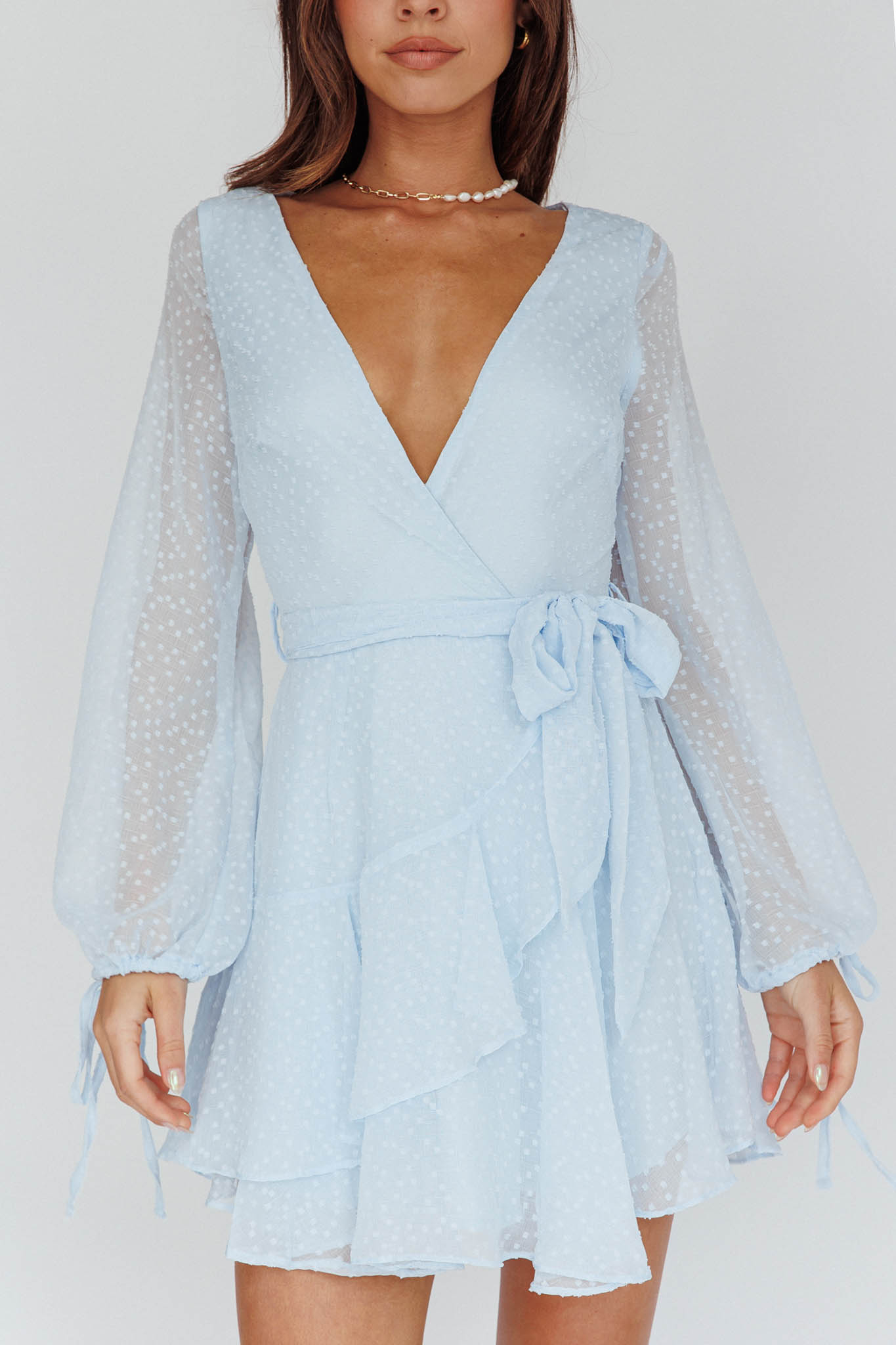 Cocktail party? Classy dinner? This pretty dress has you covered. Partially lined for modesty, we're obsessed with it's delicate hail spot chiffon fabric, and with its on-trend ruffle skirt, belted waist tie, long balloon sleeves and deep V-neckline, you'll be turning heads every where you go. Pair it with single strap heels for a look we are loving.