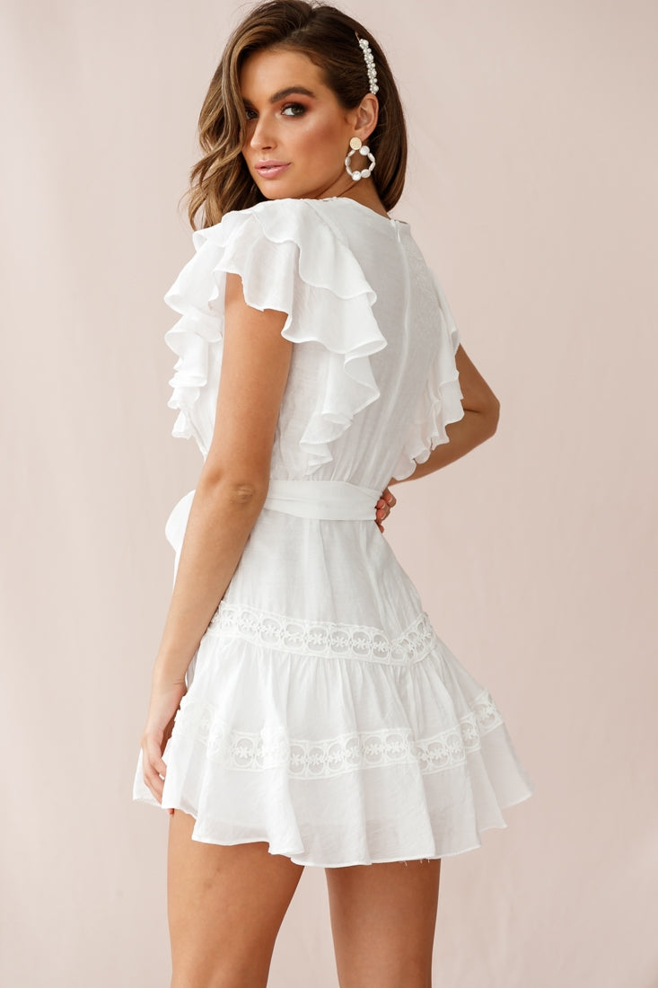 How gorgeous is our Sheridan dress? We can't get enough of those double frill sleeves! Also featuring stunning crochet inserts, a V-neckline with string tassel details and a separate waist-tie belt. It's perfect for a bridal shower or brunch with your girls. Team it with nude pumps and statement earrings for a look we are loving.