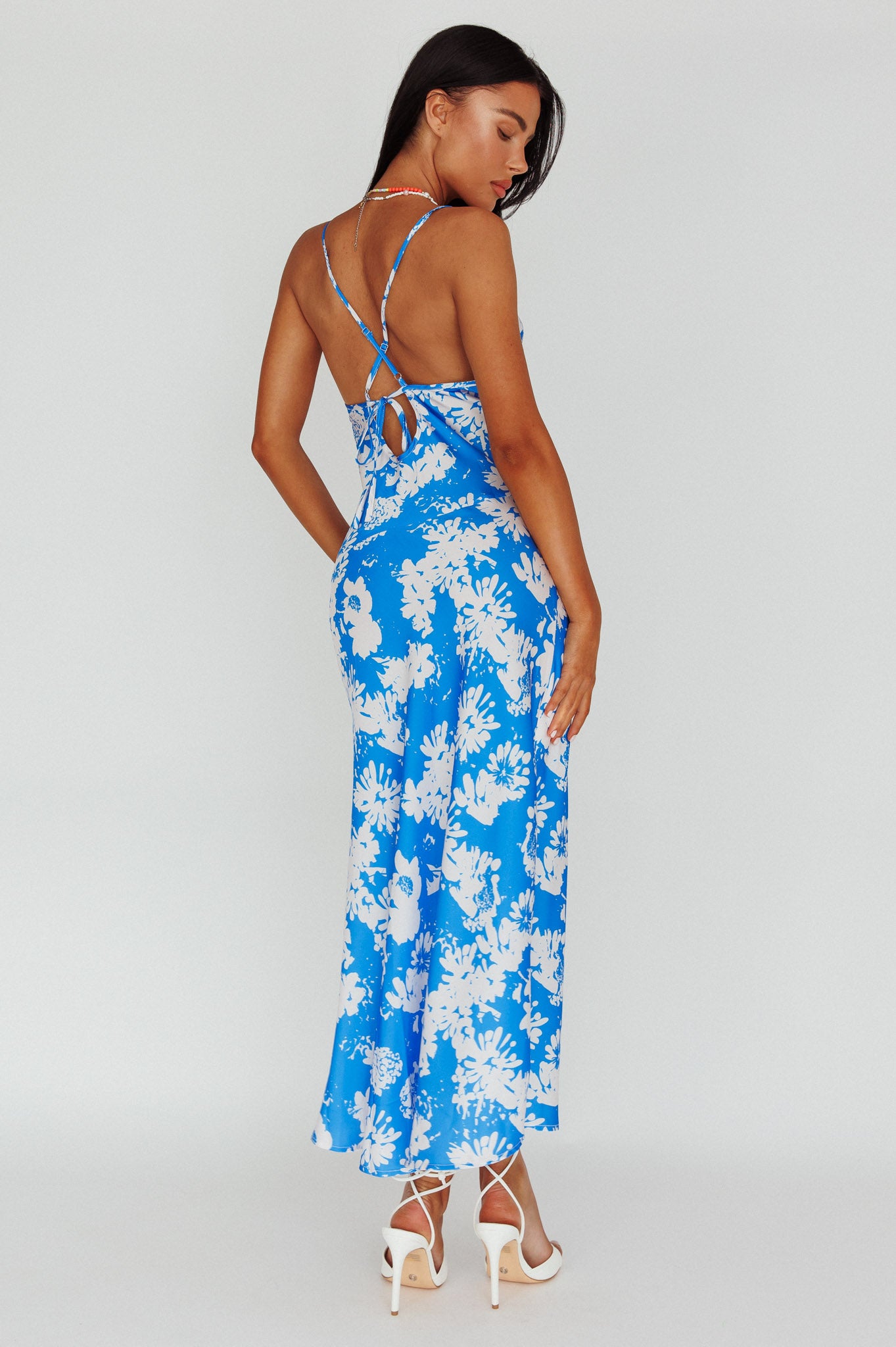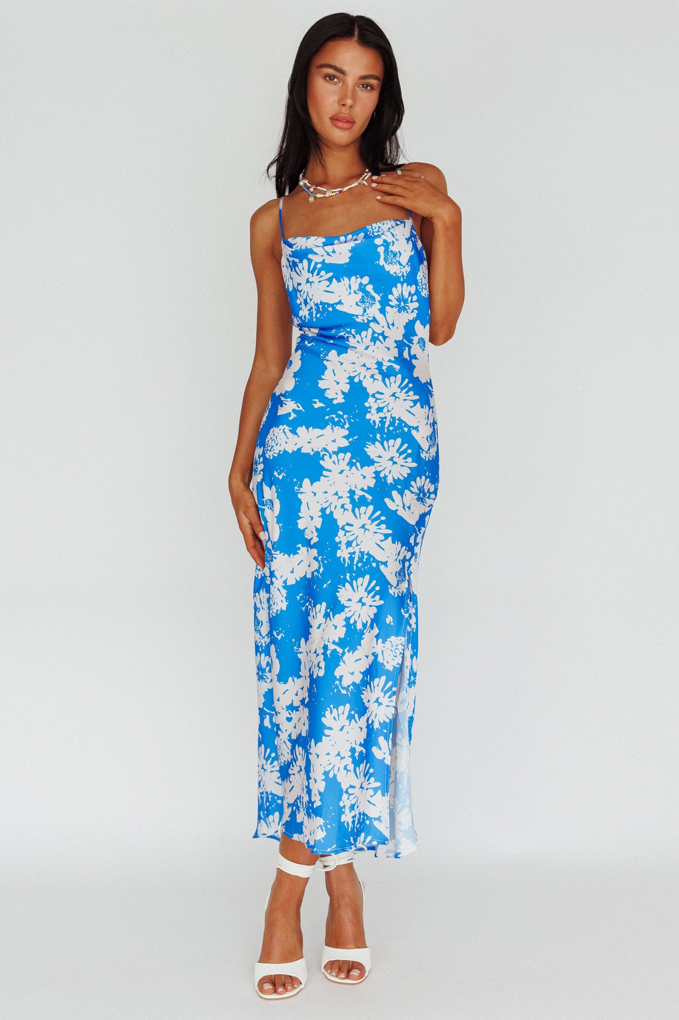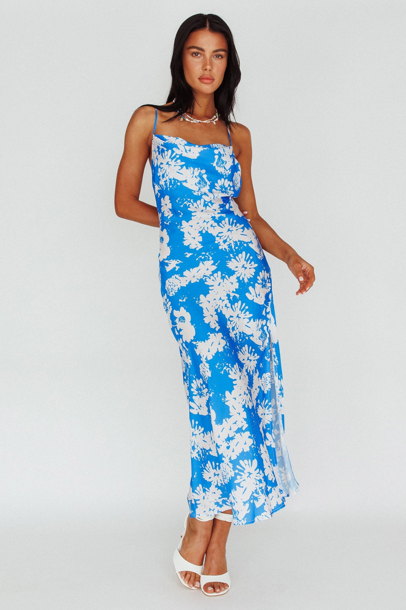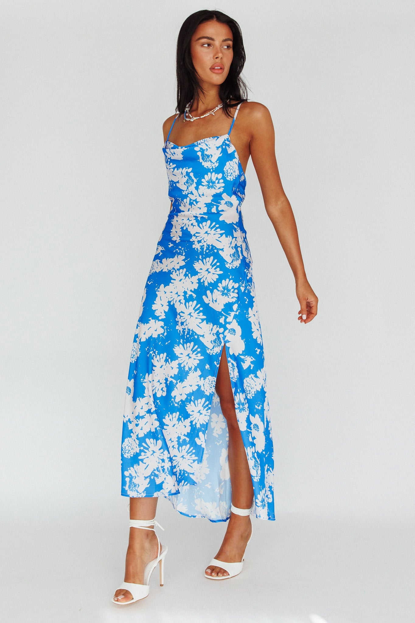 - Blue floral midi dress